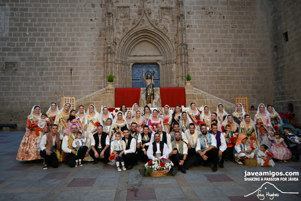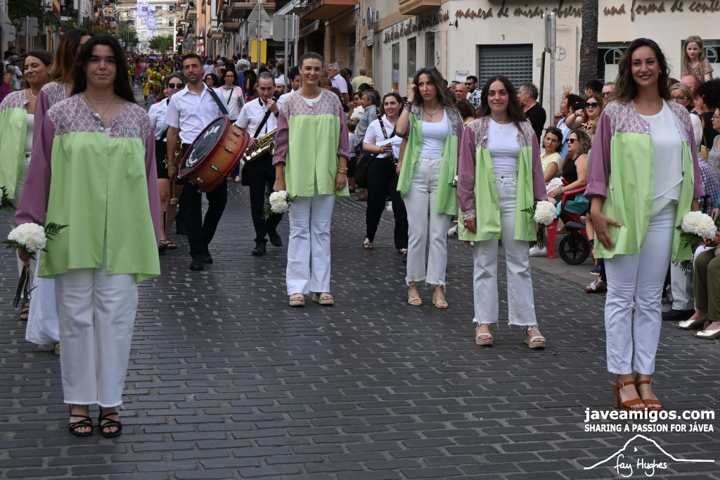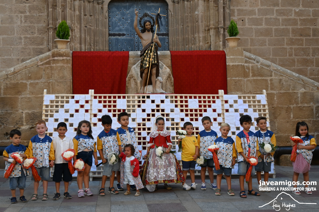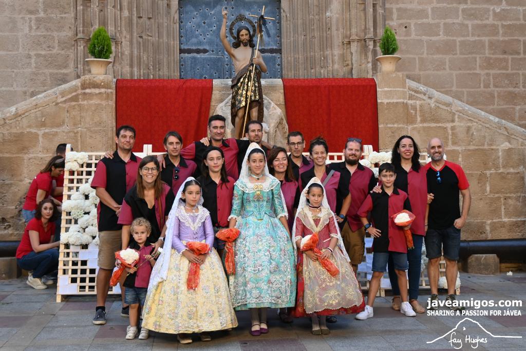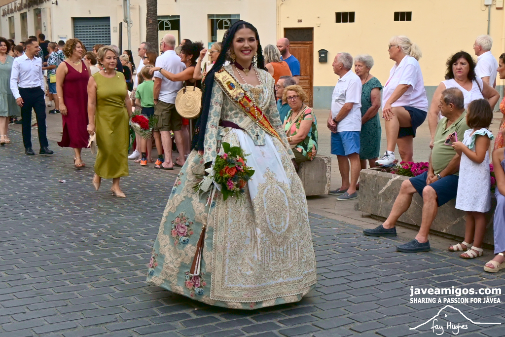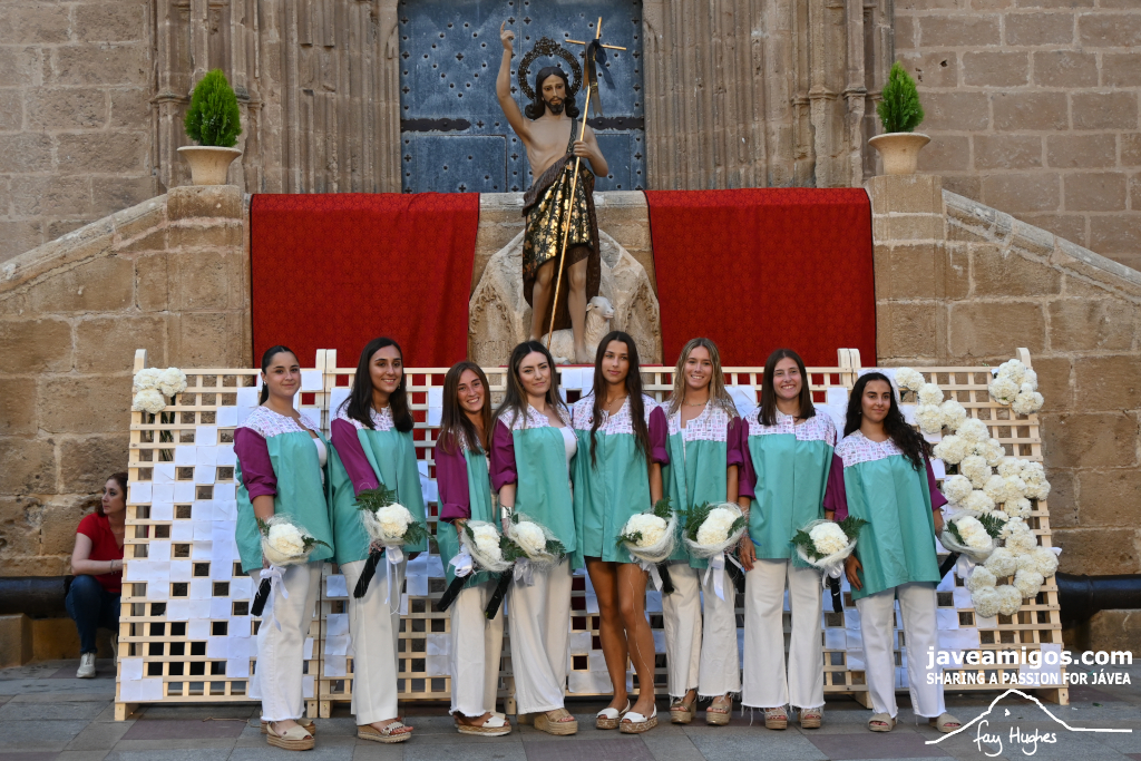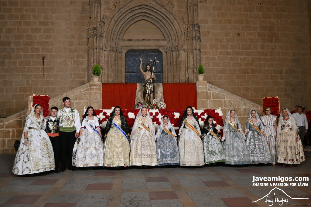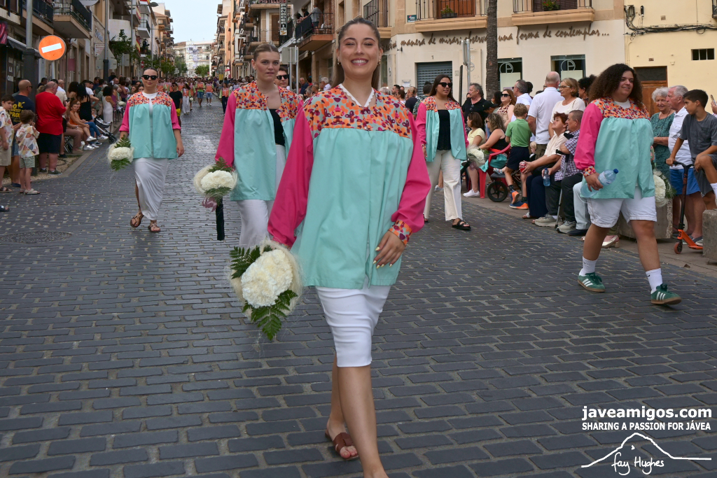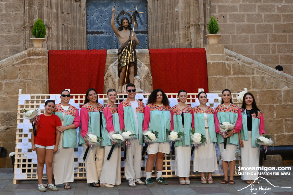 One of the most moving and traditional events of the Fogueres de Sant Joan de Xàbia is the flower offering to the saint. Hundreds of people participated in a parade that filled the streets of the historic centre with colour and joy, watched by thousands of residents and visitors.
