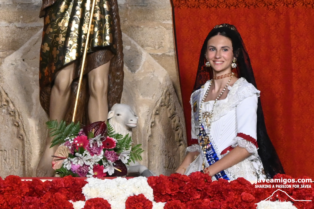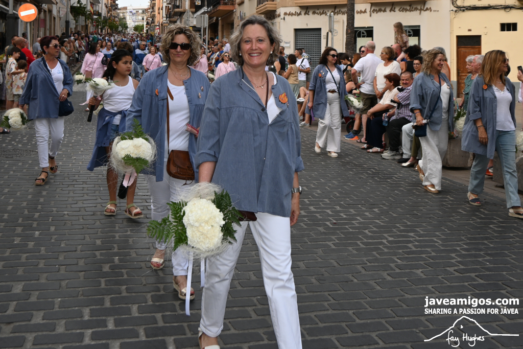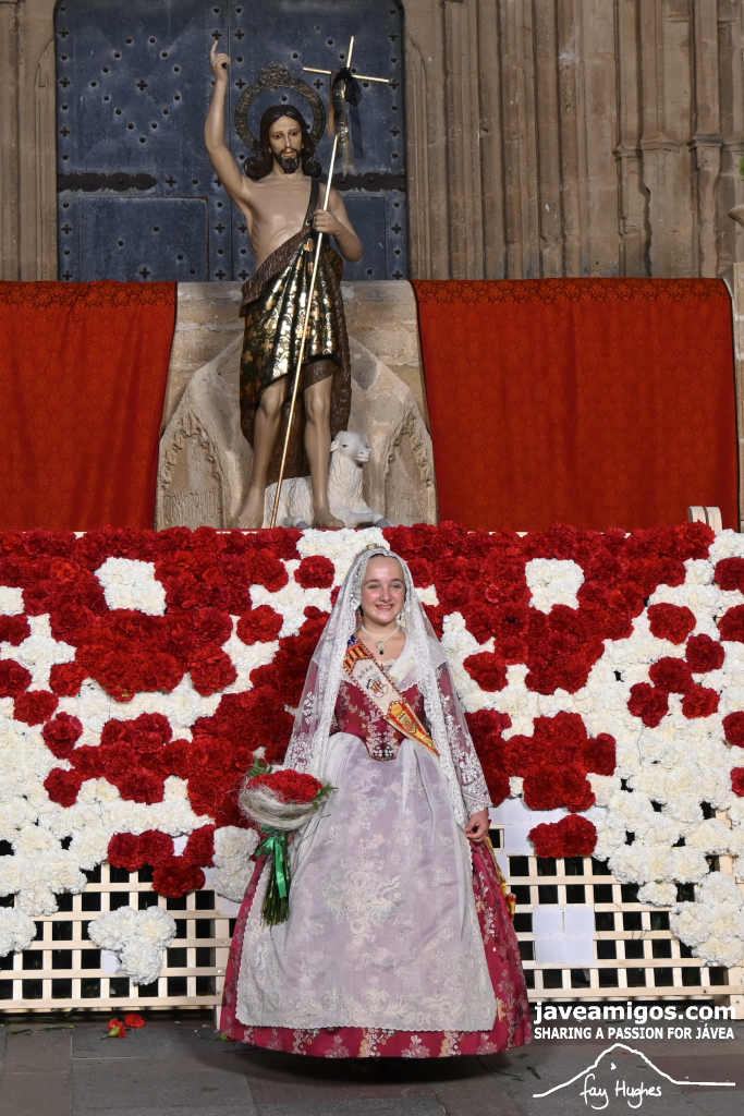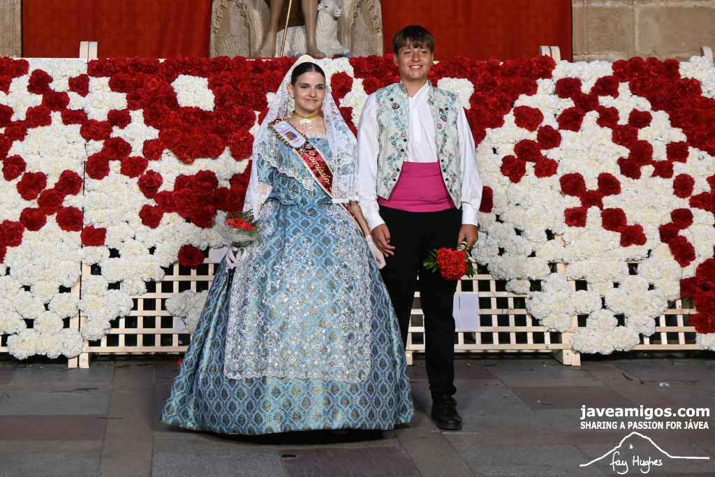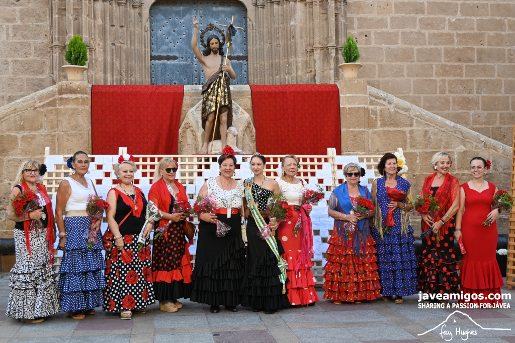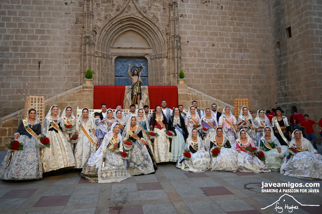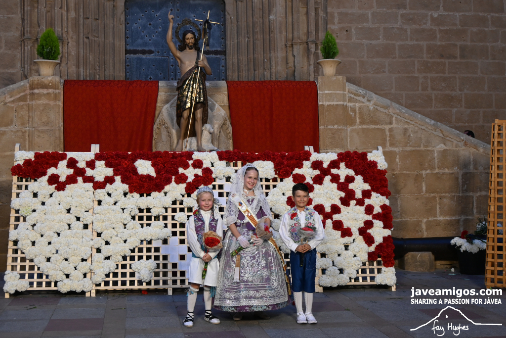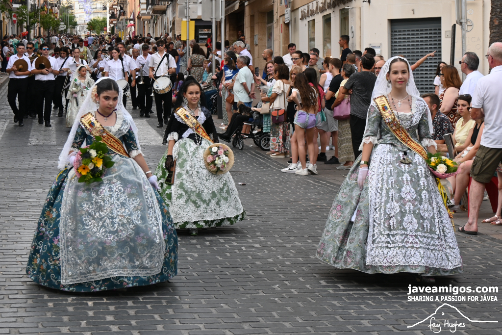 One of the most moving and traditional events of the Fogueres de Sant Joan de Xàbia is the flower offering to the saint. Hundreds of people participated in a parade that filled the streets of the historic centre with colour and joy, watched by thousands of residents and visitors.