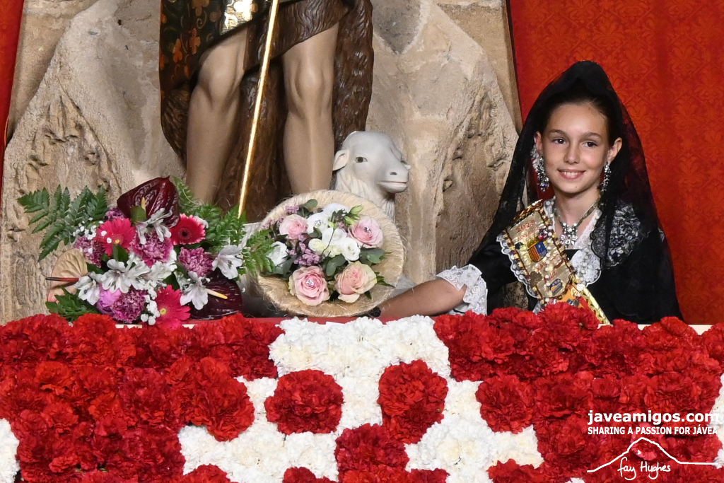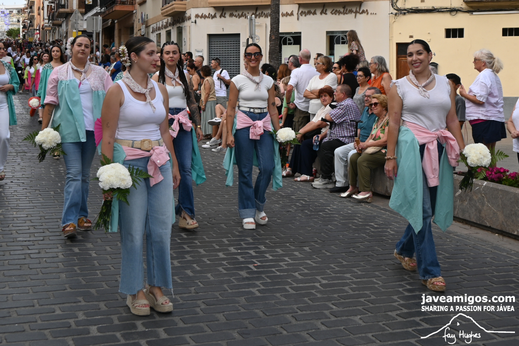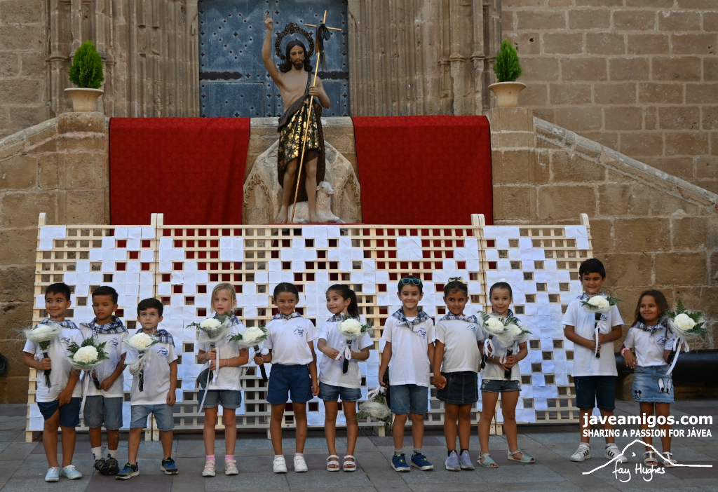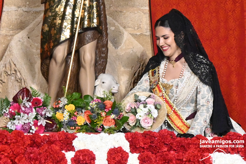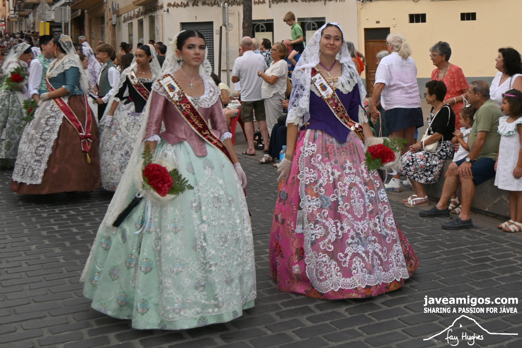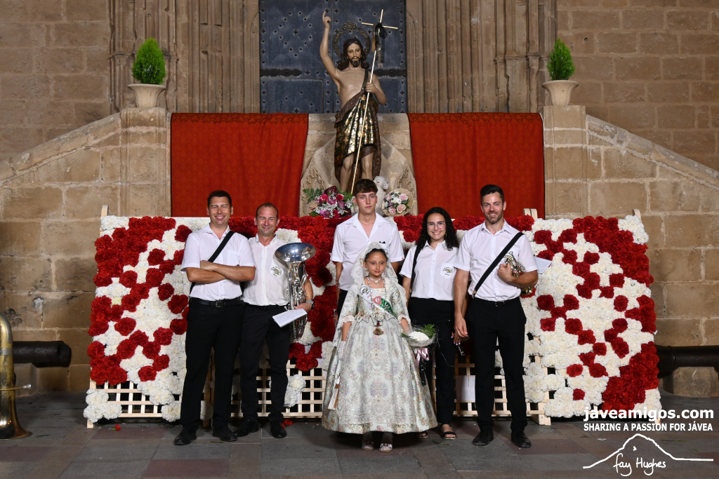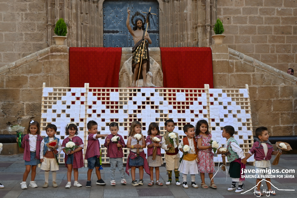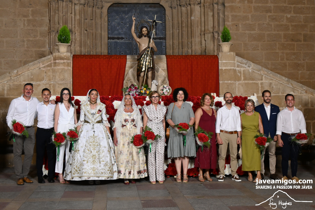 One of the most moving and traditional events of the Fogueres de Sant Joan de Xàbia is the flower offering to the saint. Hundreds of people participated in a parade that filled the streets of the historic centre with colour and joy, watched by thousands of residents and visitors.