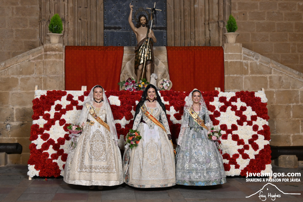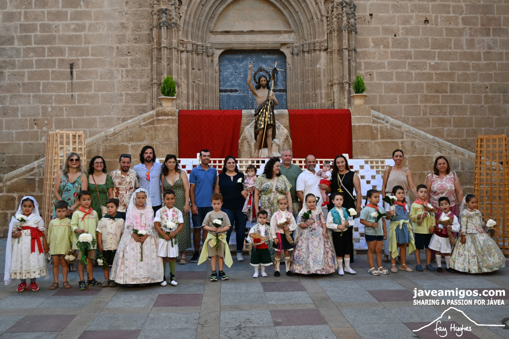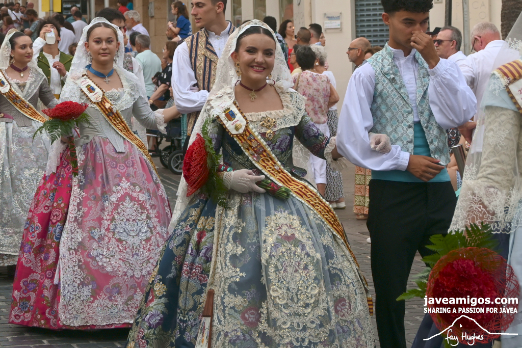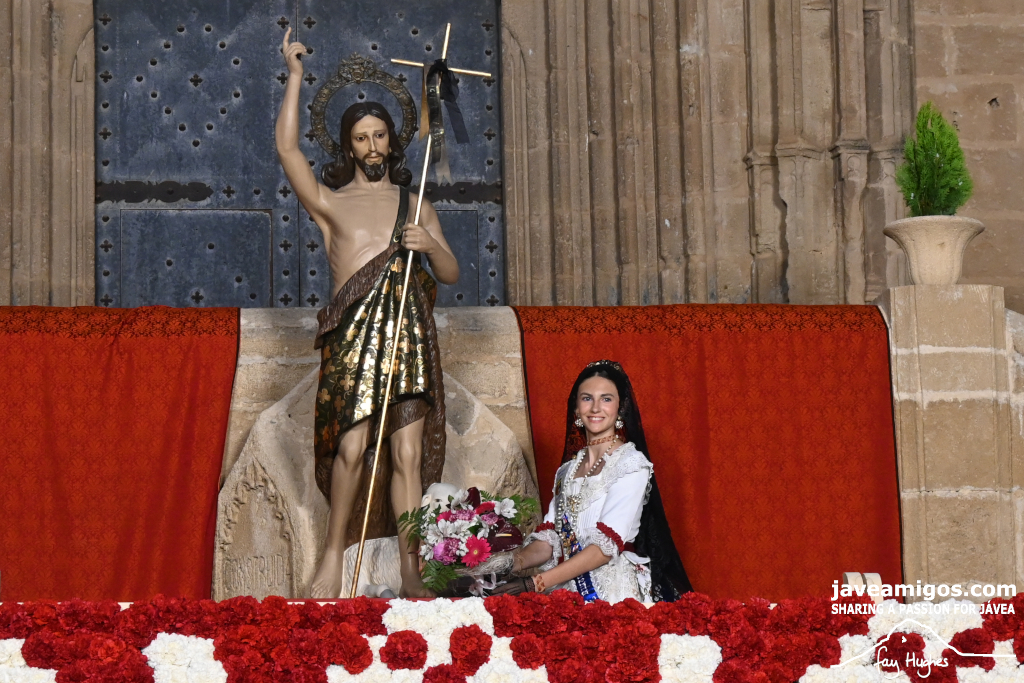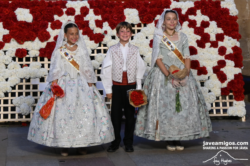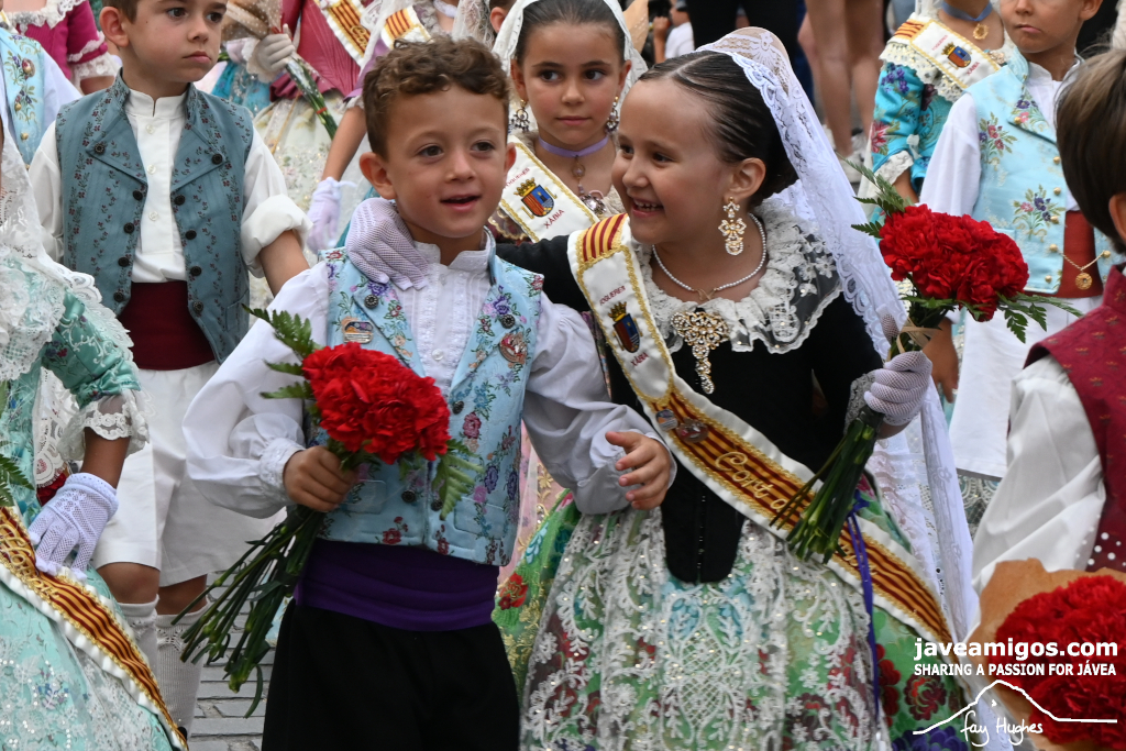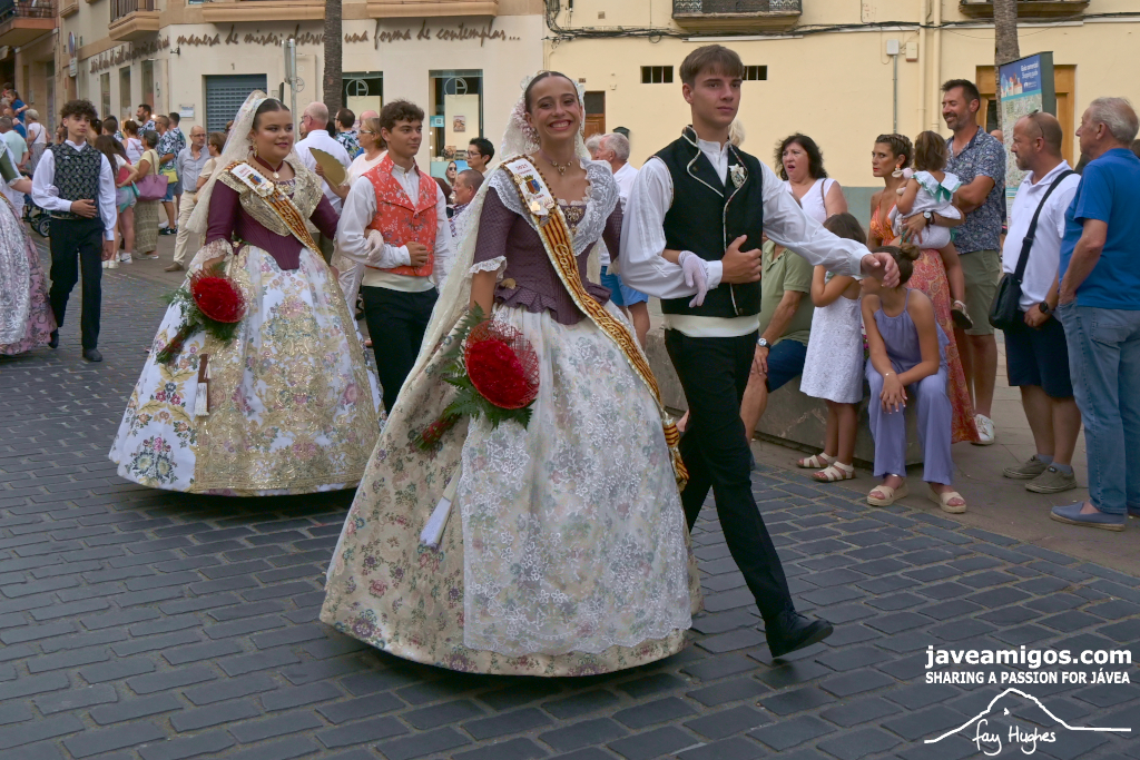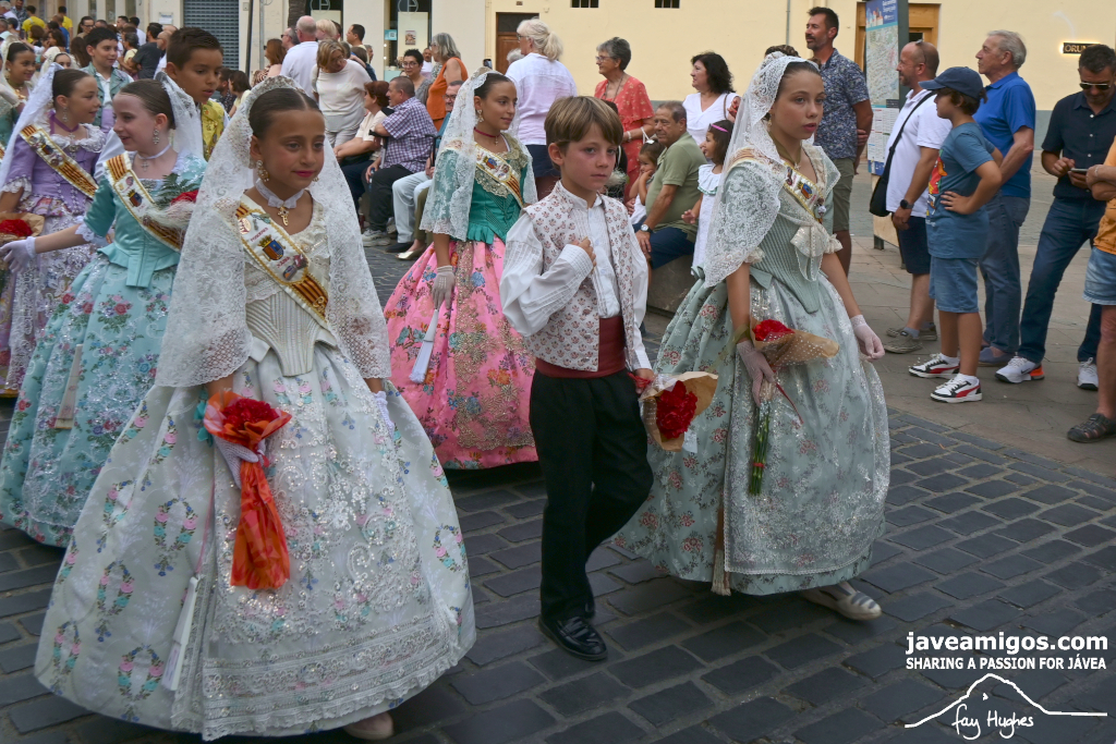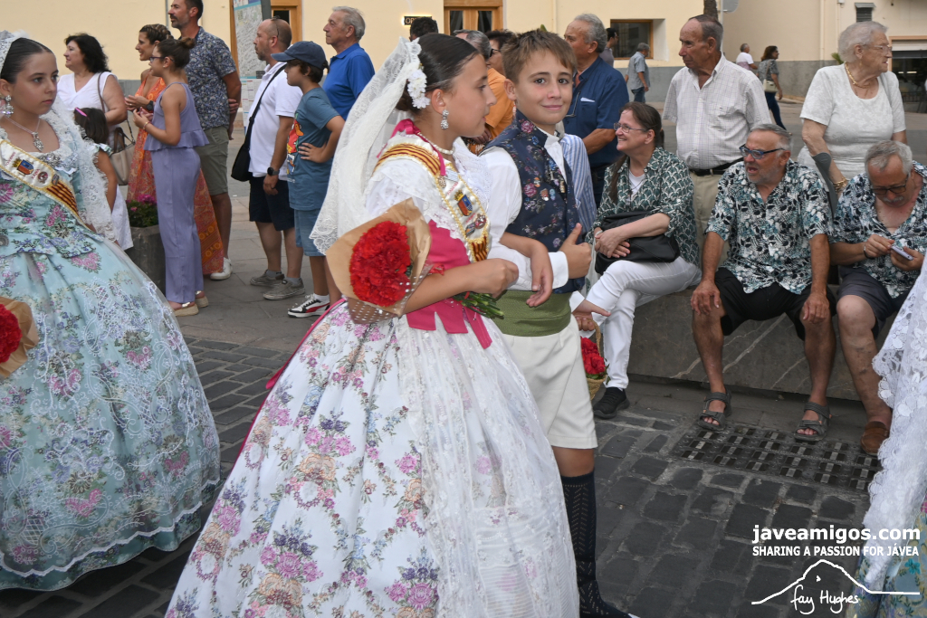 One of the most moving and traditional events of the Fogueres de Sant Joan de Xàbia is the flower offering to the saint. Hundreds of people participated in a parade that filled the streets of the historic centre with colour and joy, watched by thousands of residents and visitors.