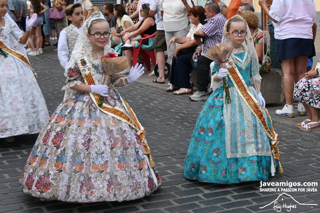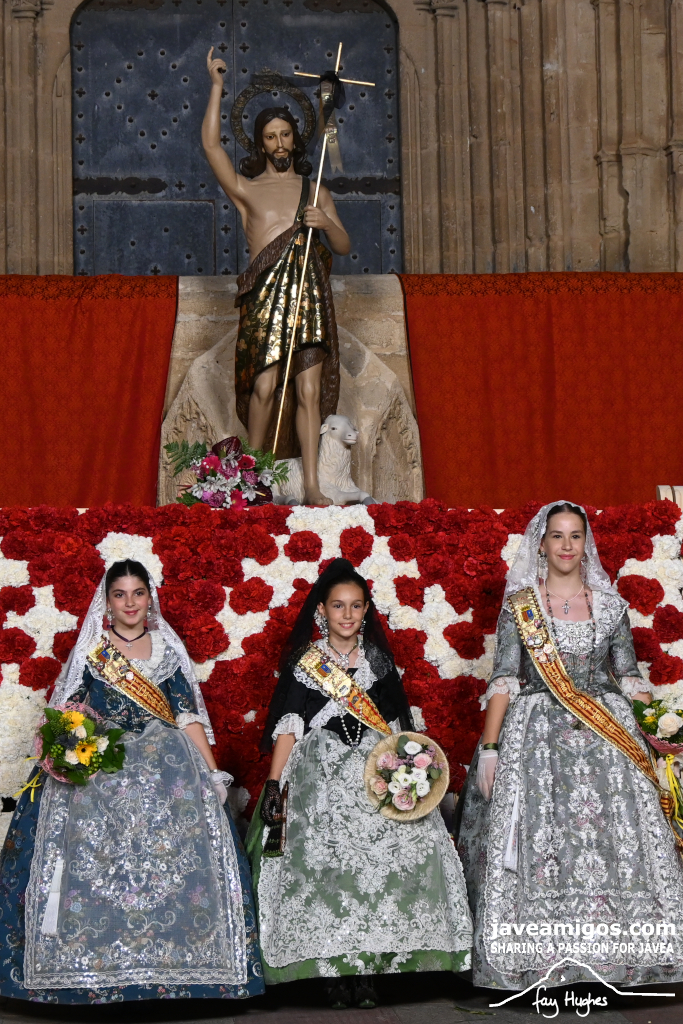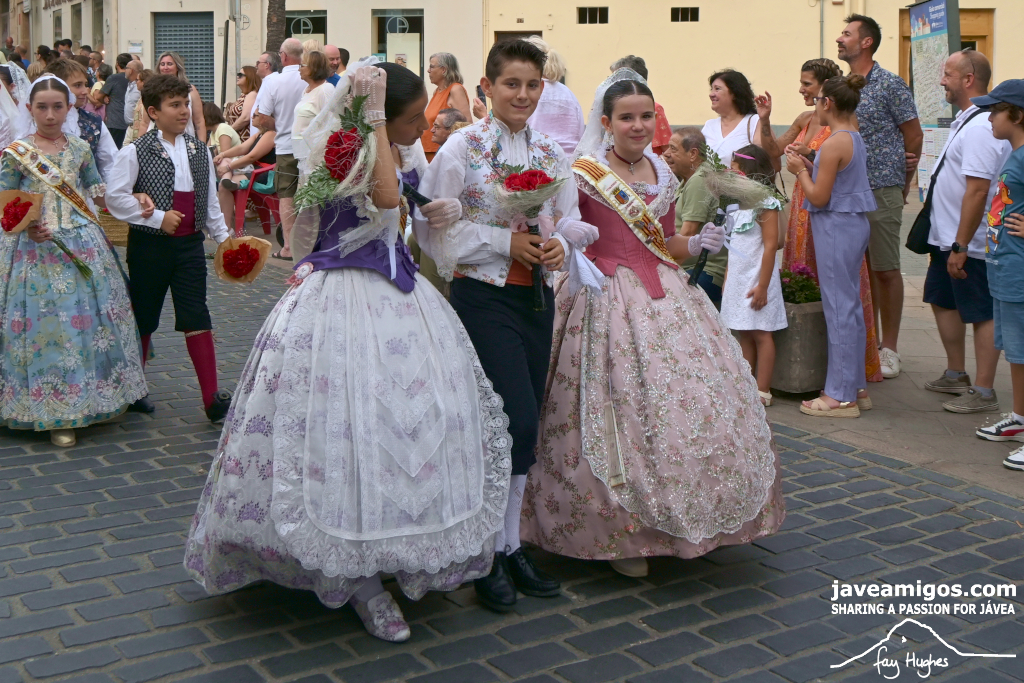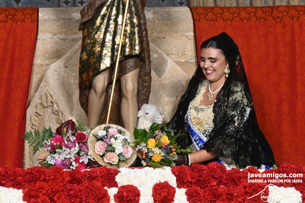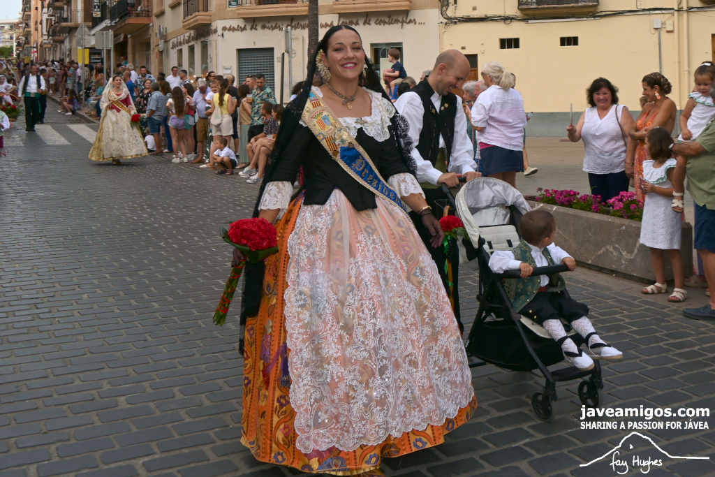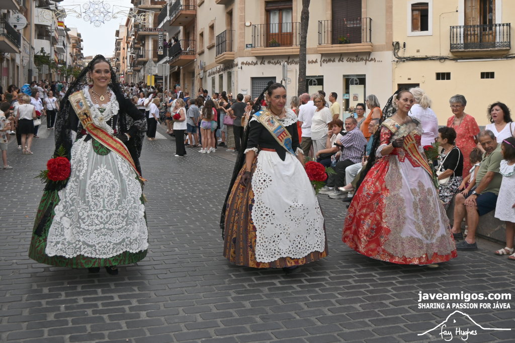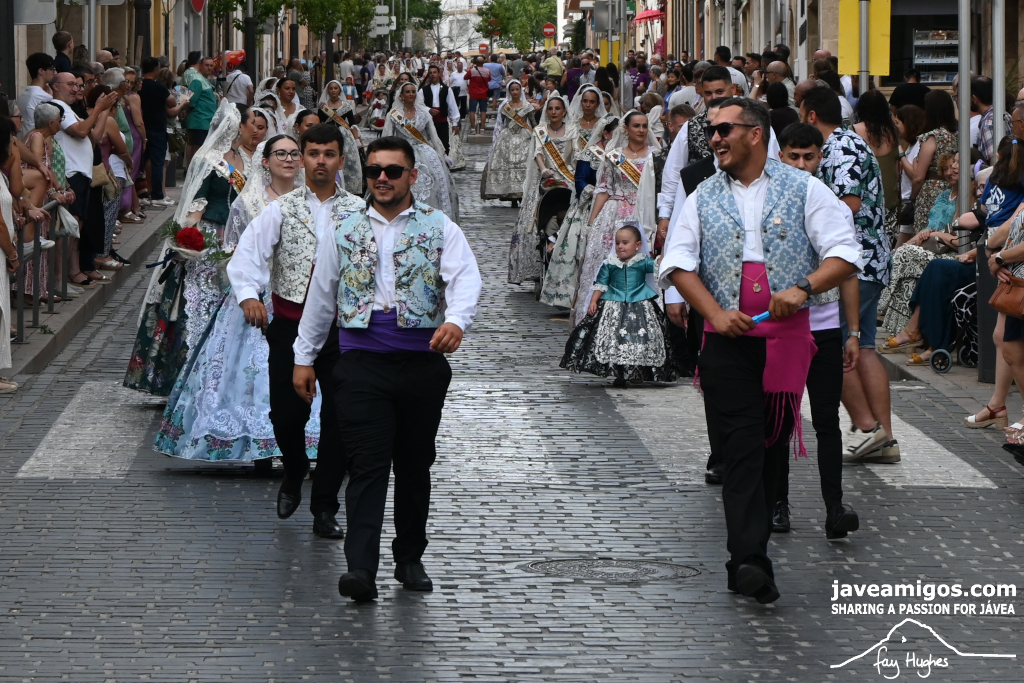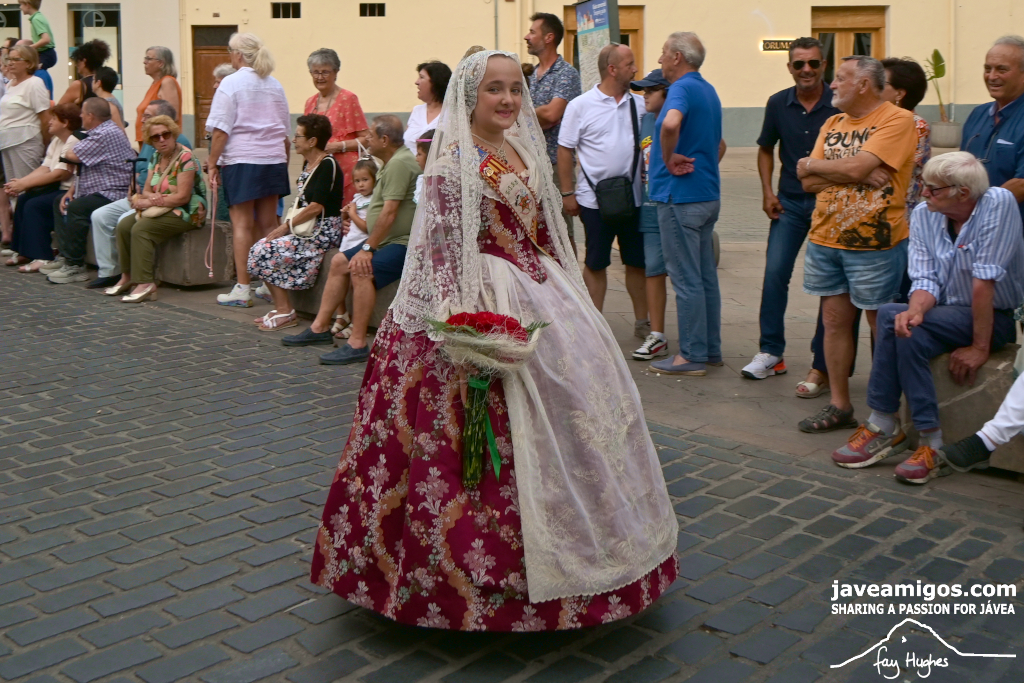 One of the most moving and traditional events of the Fogueres de Sant Joan de Xàbia is the flower offering to the saint. Hundreds of people participated in a parade that filled the streets of the historic centre with colour and joy, watched by thousands of residents and visitors.