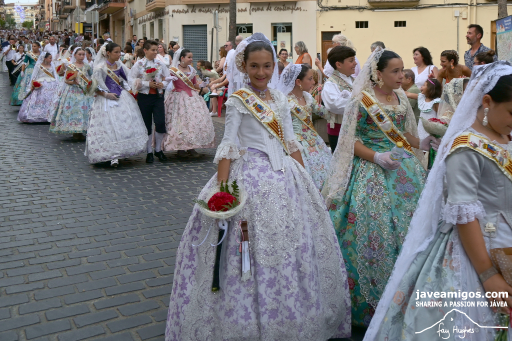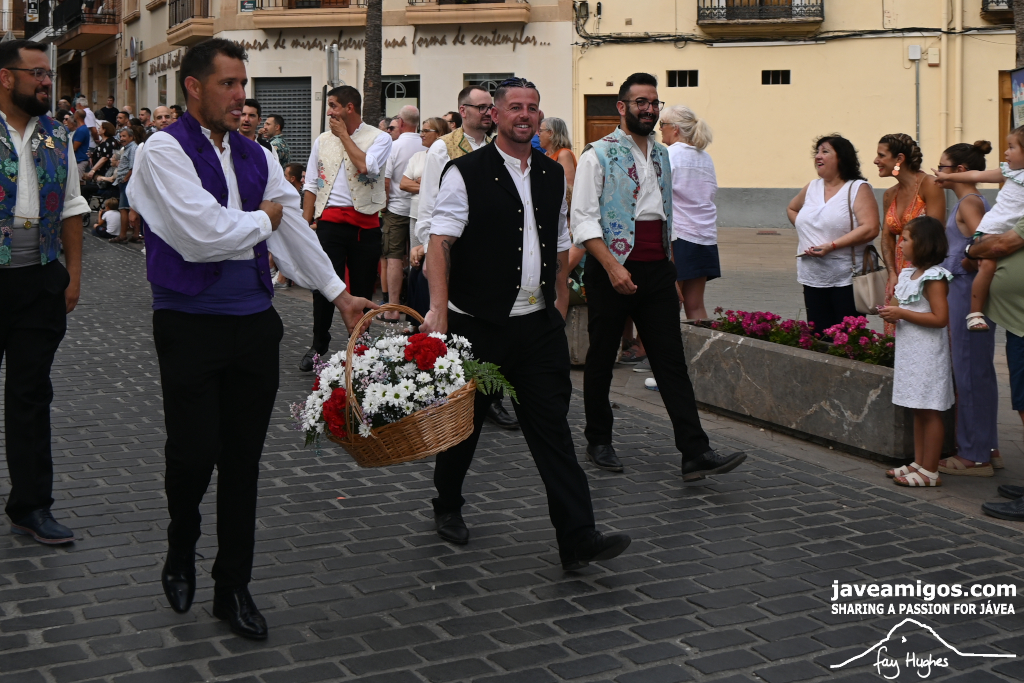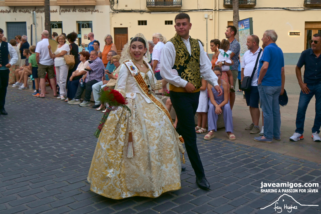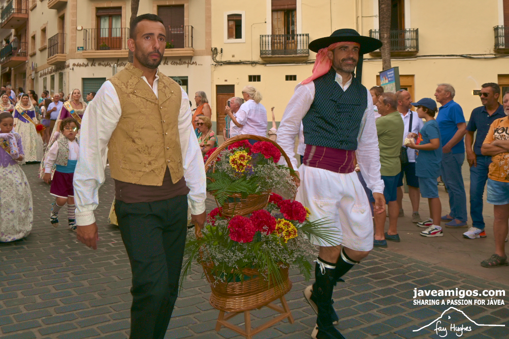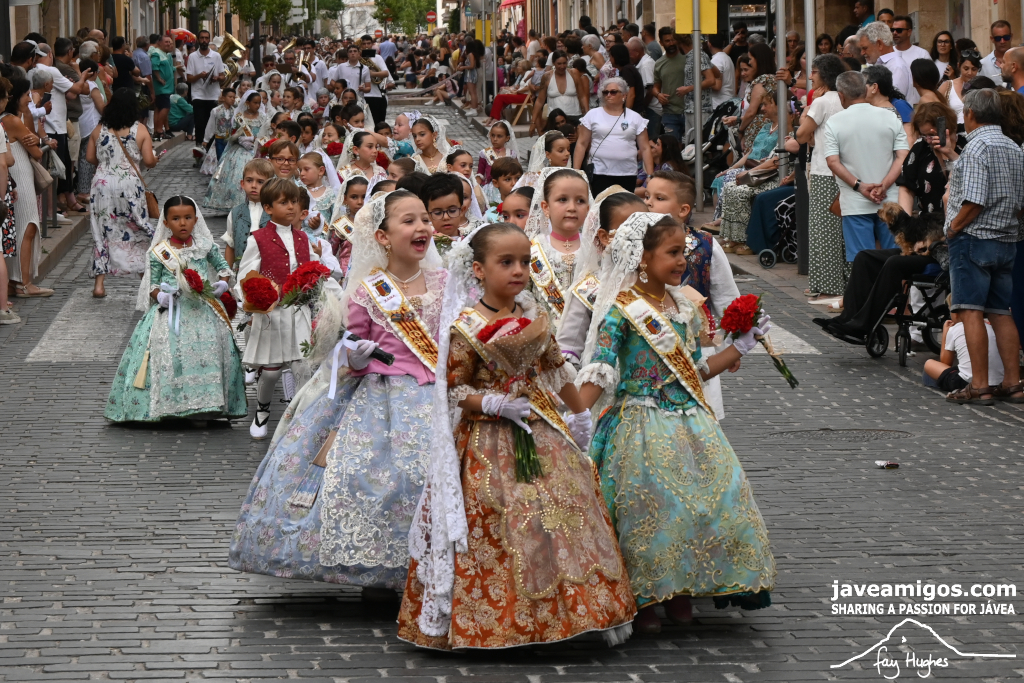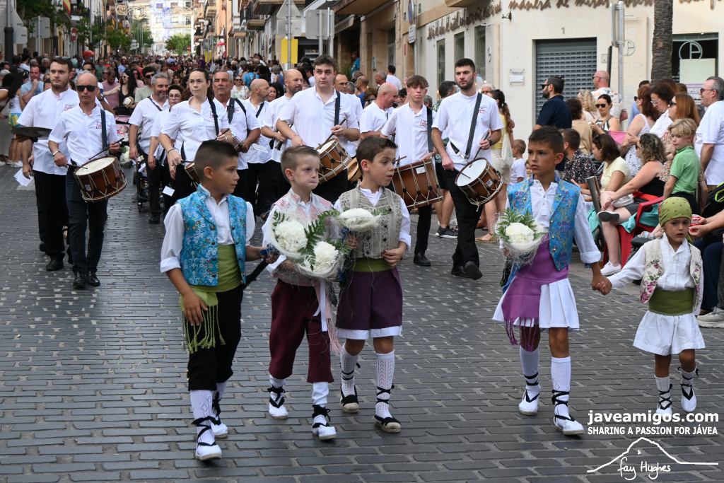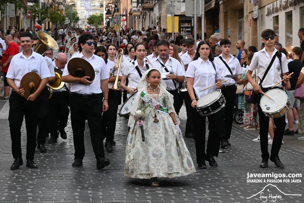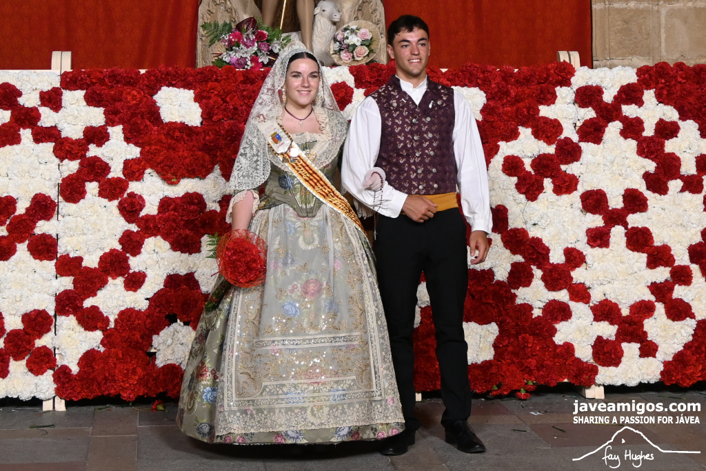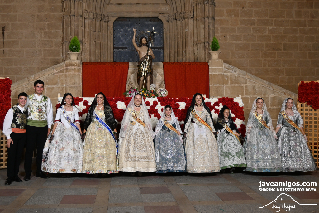 One of the most moving and traditional events of the Fogueres de Sant Joan de Xàbia is the flower offering to the saint. Hundreds of people participated in a parade that filled the streets of the historic centre with colour and joy, watched by thousands of residents and visitors.