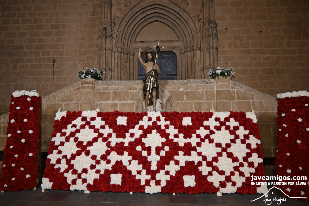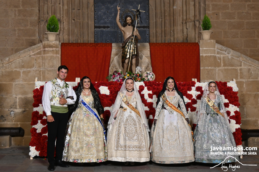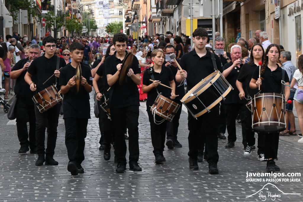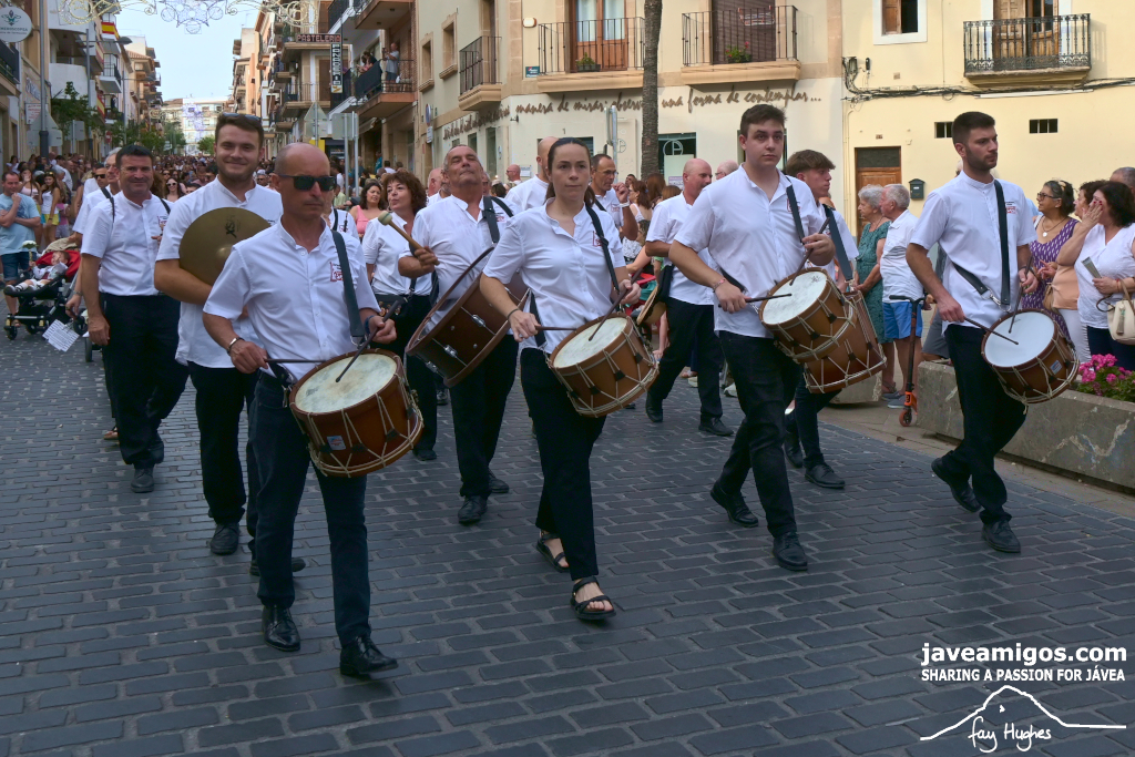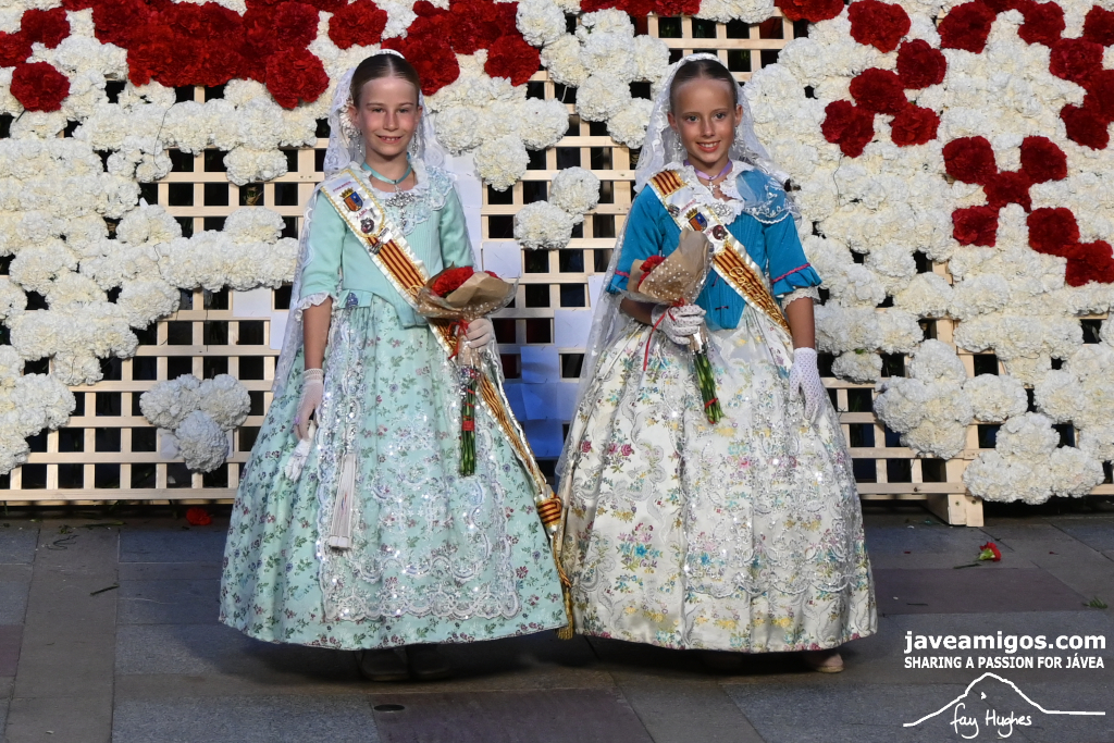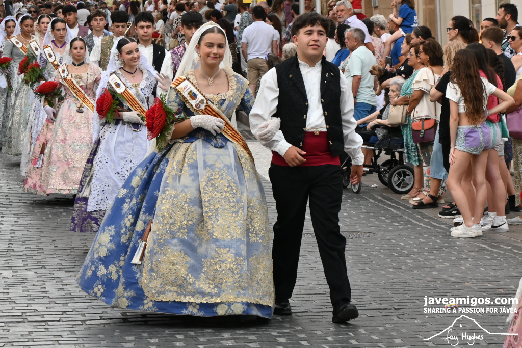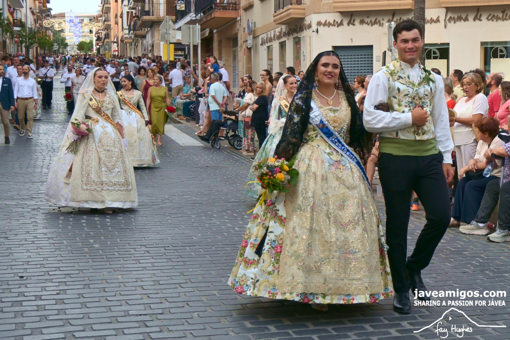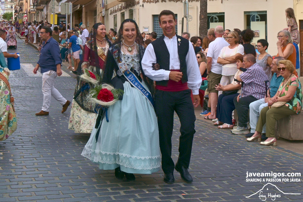 One of the most moving and traditional events of the Fogueres de Sant Joan de Xàbia is the flower offering to the saint. Hundreds of people participated in a parade that filled the streets of the historic centre with colour and joy, watched by thousands of residents and visitors.