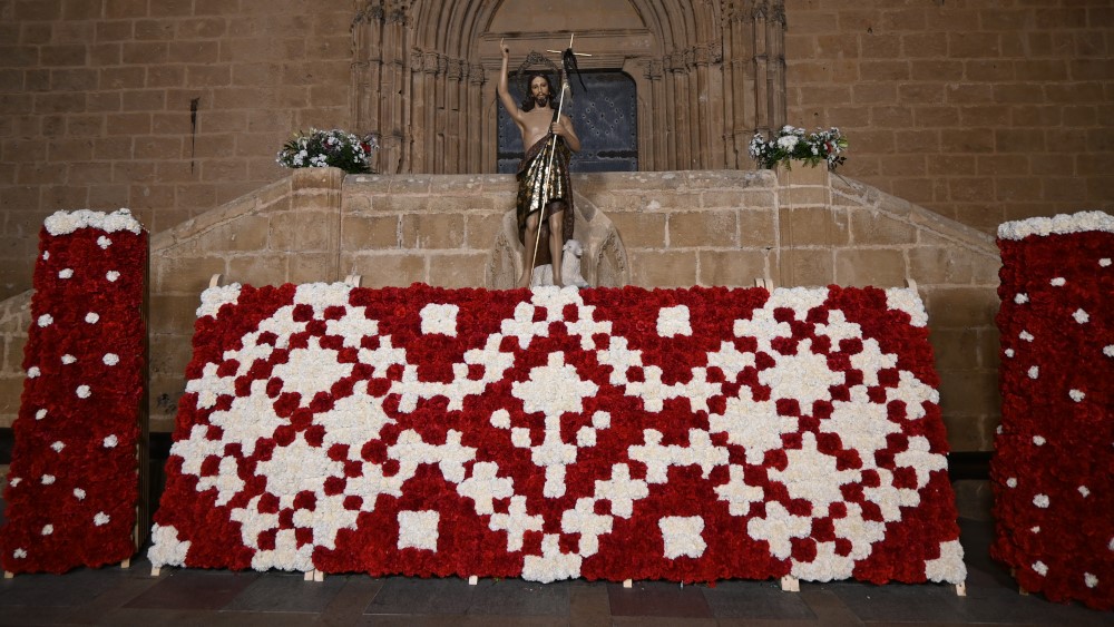 The procession began in the Thiviers neighborhood, from where the groups set off to the accompaniment of music and applause. The route followed a long route around the historic centre to reach the Plaza de la Iglésia, where, as is tradition, a spectacular floral tapestry was created at the foot of the statue of Sant Joan, a task carried out by the Penya La Patxorra.