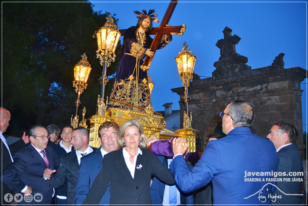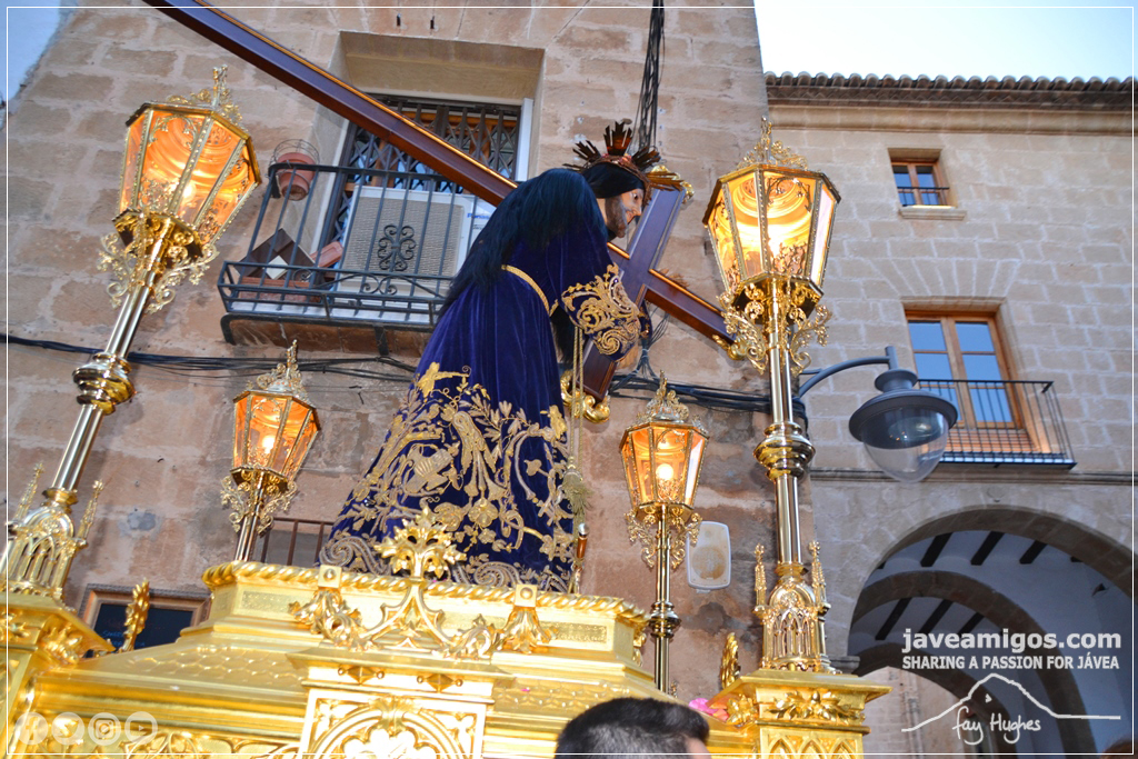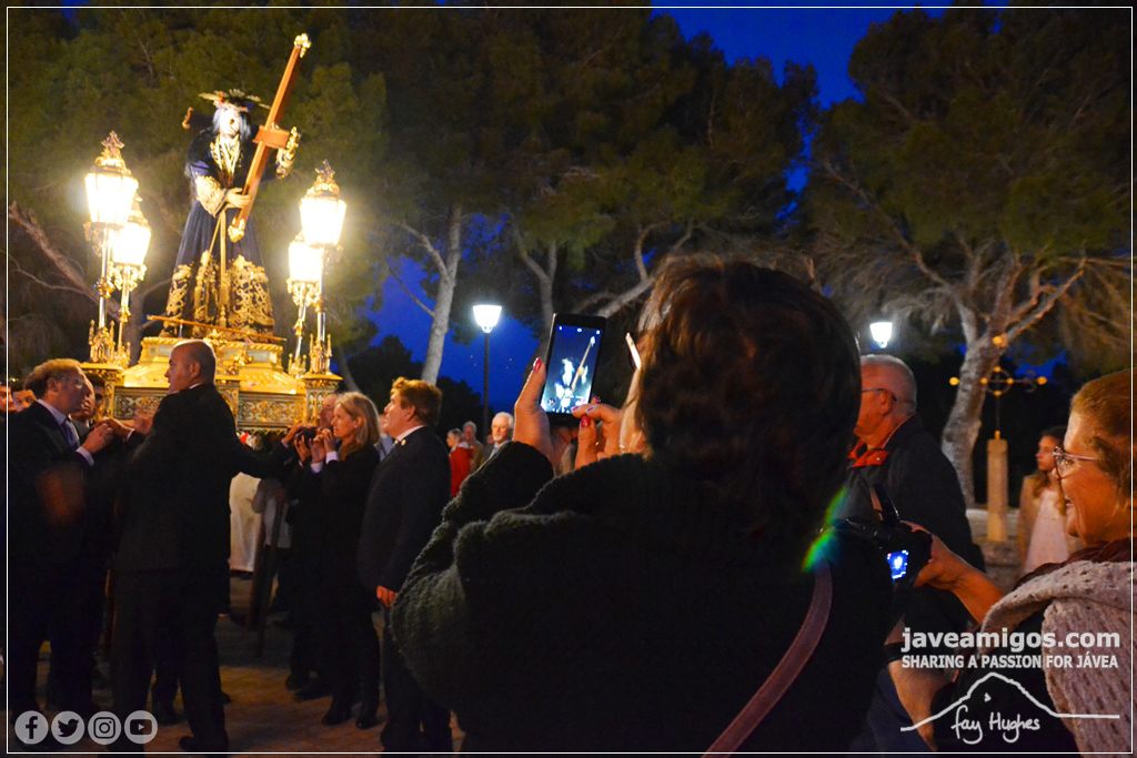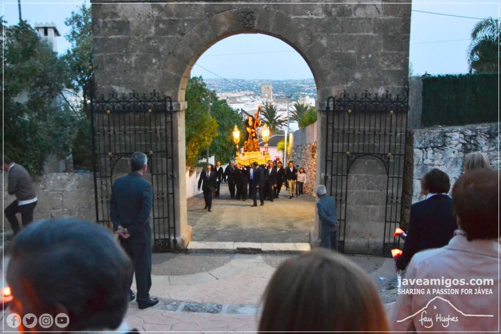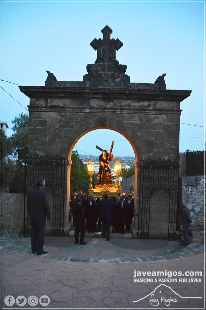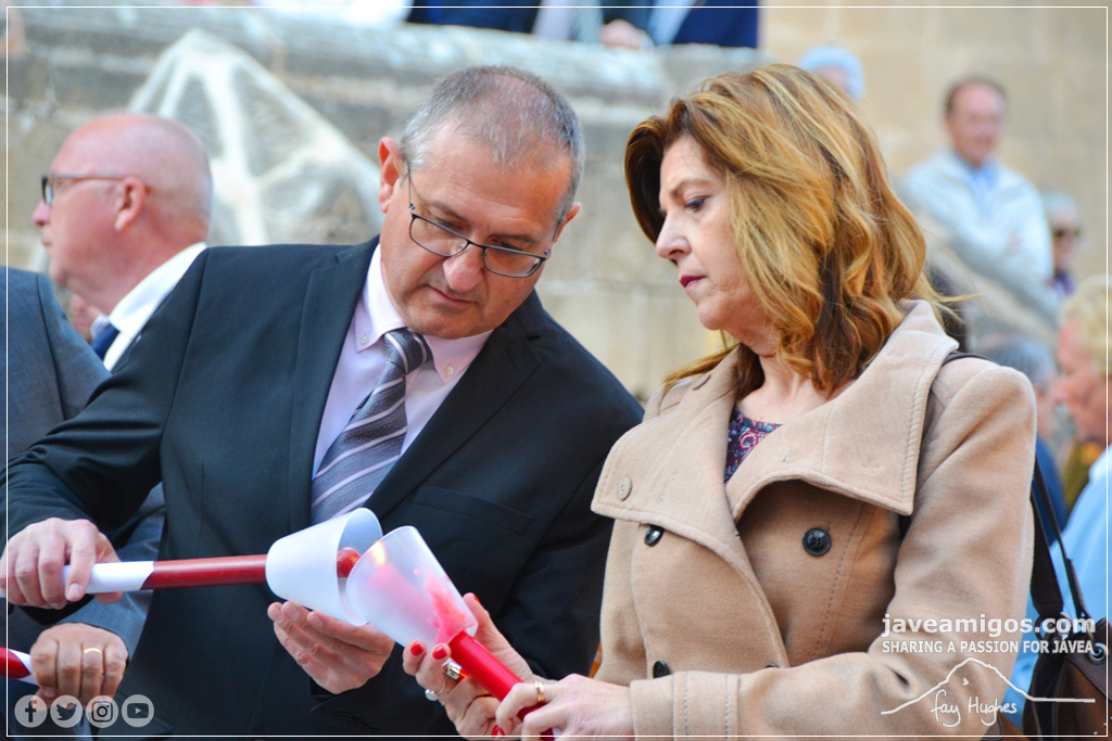 Today – May 3rd – is a bank holiday in Xàbia and is normally the final day in the celebrations that honour the town’s treasured image of Jesús Nazareno. As night begins to fall, the image is removed from inside the historic church of San Bartolomé and carried on the shoulders of the brotherhood back up the hill to the blue-domed church of Calvario, accompanied by the people of the town carrying candles to the light the way. It’s an emotional sight as darkness falls and the string of lights weaves its way up to the chapel. The whole programme is brought to an end by a spectacular firework display.