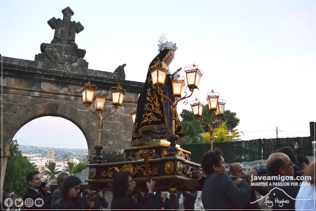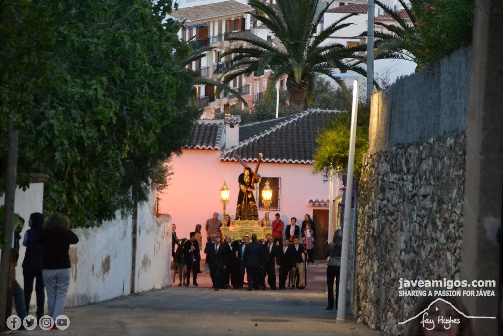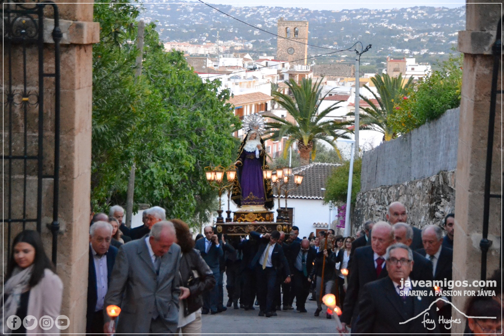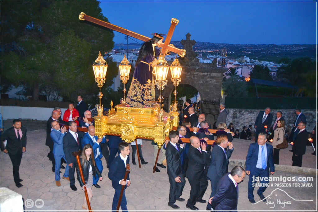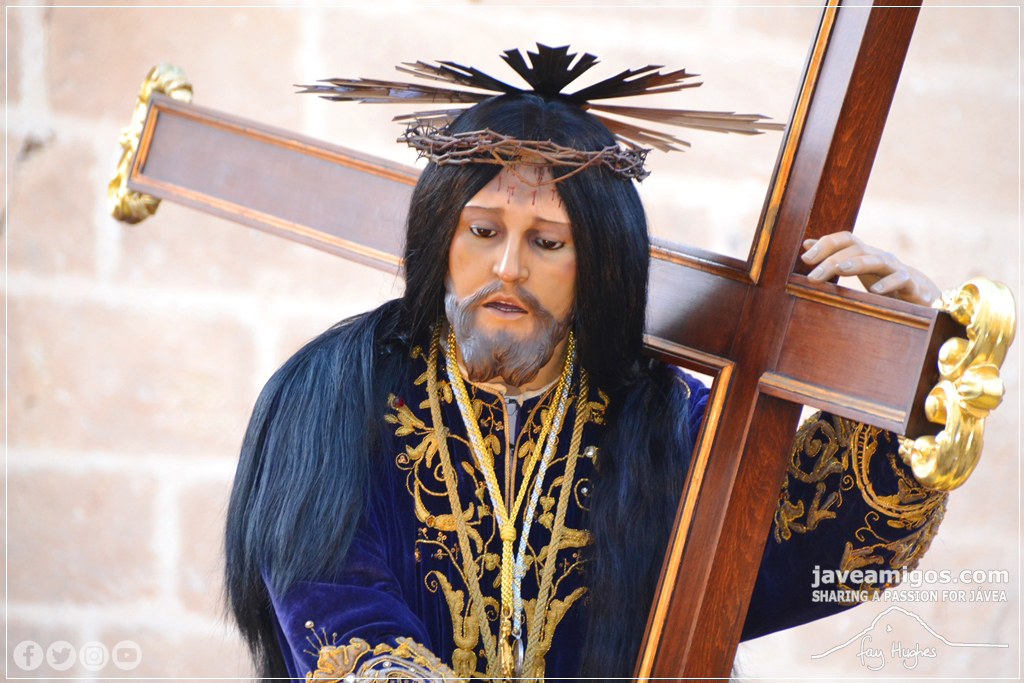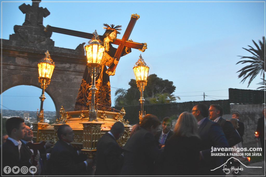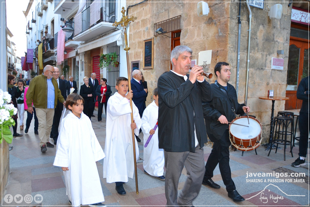 Today – May 3rd – is a bank holiday in Xàbia and is normally the final day in the celebrations that honour the town’s treasured image of Jesús Nazareno. As night begins to fall, the image is removed from inside the historic church of San Bartolomé and carried on the shoulders of the brotherhood back up the hill to the blue-domed church of Calvario, accompanied by the people of the town carrying candles to the light the way. It’s an emotional sight as darkness falls and the string of lights weaves its way up to the chapel. The whole programme is brought to an end by a spectacular firework display.