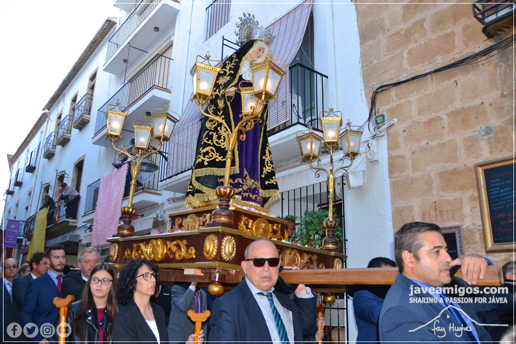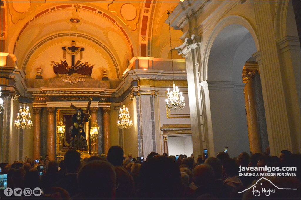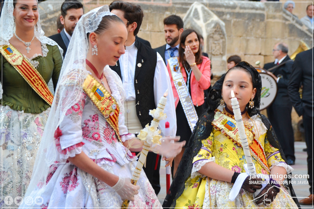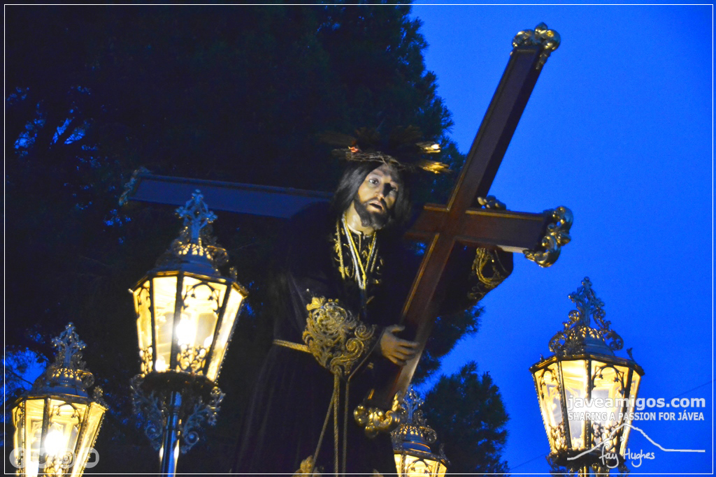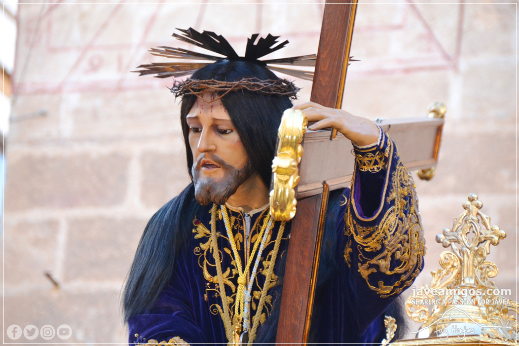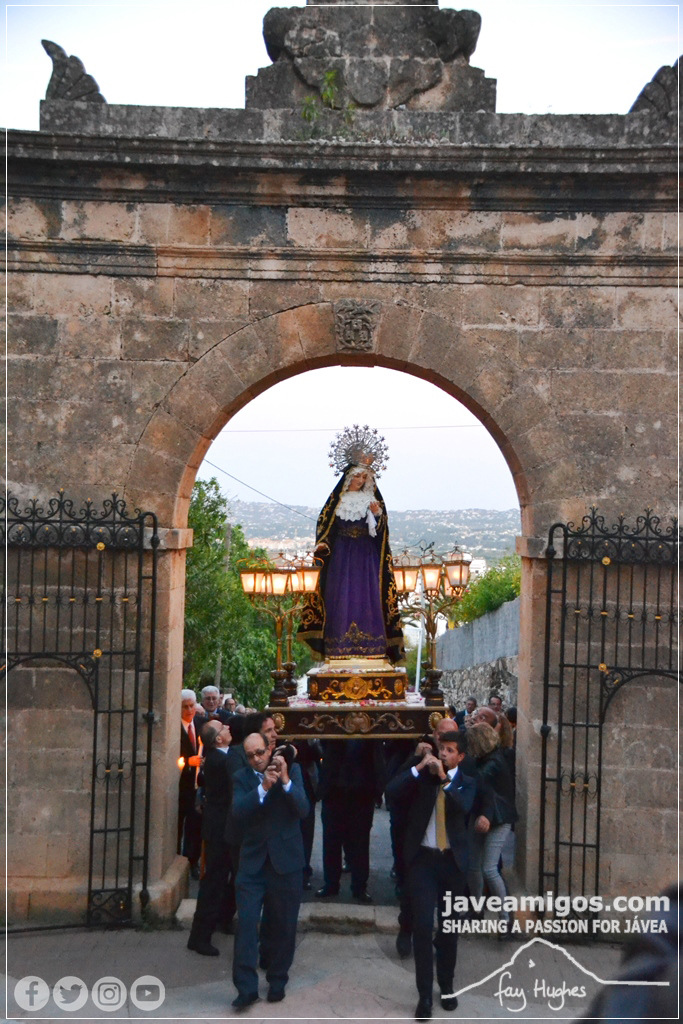 Today – May 3rd – is a bank holiday in Xàbia and is normally the final day in the celebrations that honour the town’s treasured image of Jesús Nazareno. As night begins to fall, the image is removed from inside the historic church of San Bartolomé and carried on the shoulders of the brotherhood back up the hill to the blue-domed church of Calvario, accompanied by the people of the town carrying candles to the light the way. It’s an emotional sight as darkness falls and the string of lights weaves its way up to the chapel. The whole programme is brought to an end by a spectacular firework display.