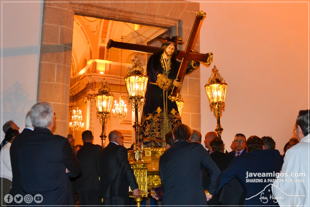 Some images from 2019 of the carrying of the treasured image of Jesús Nazareno back to the blue-domed chapel of Calvario.