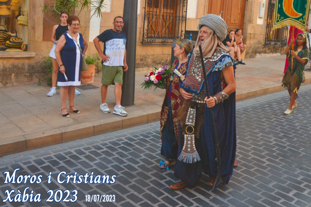 The troops of the Moors and Christians made the traditional visit to the historic centre of Xàbia to make an offering of flowers.