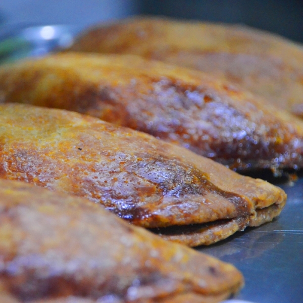 - Figatells (lightly spiced pork burger) with fried onion and mayo