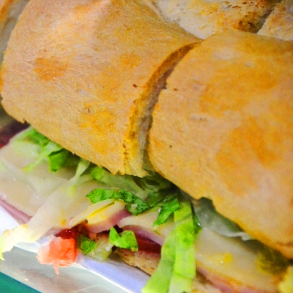 - Pork, bacon and cheese with freshly grated tomato or mayo