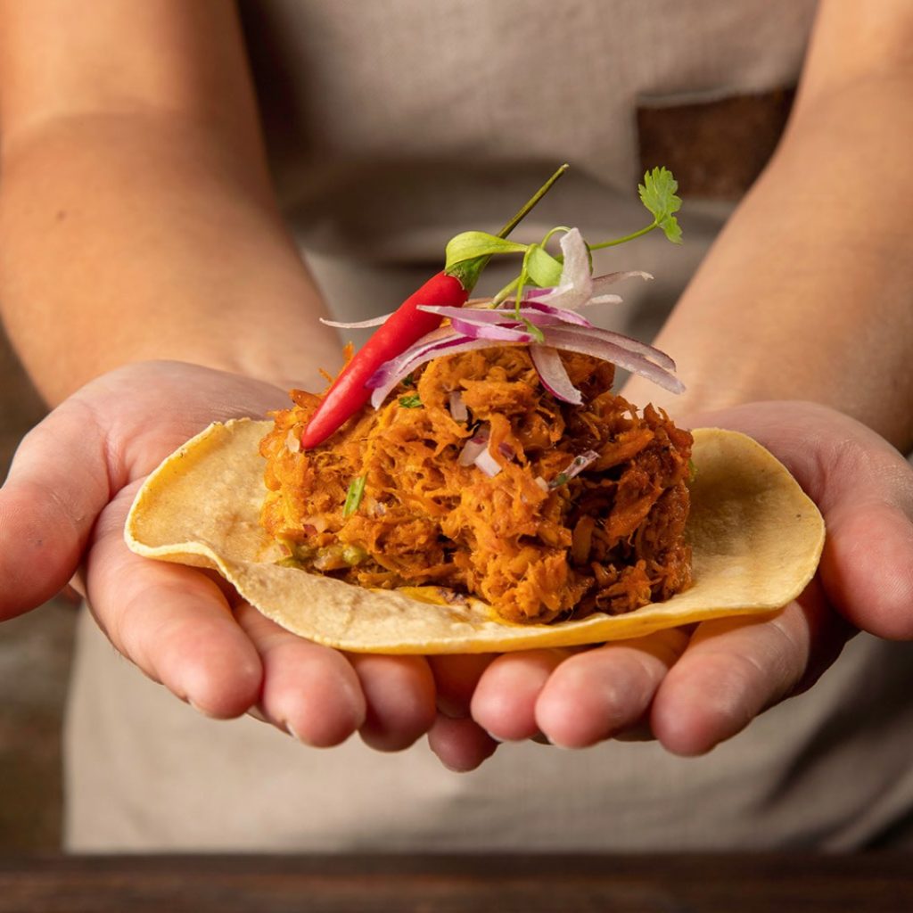Pibil - Pork roasted in Achiote, guacamole, pico de gallo and spicy sauce