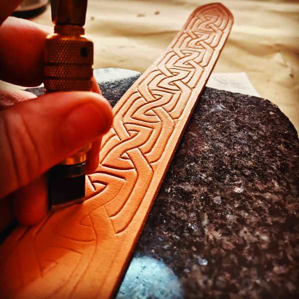 Passing through the door, the visitor enters a real world of leather with something for just about everyone from belts and bracelets to bags, tablet and e-book cases, tobacco pouches and spectacle cases, and much more all made from full grain, vegetable tanned leather in the workshop at the rear of the shop where you can see Maddie and Edu hard at work on their next project.