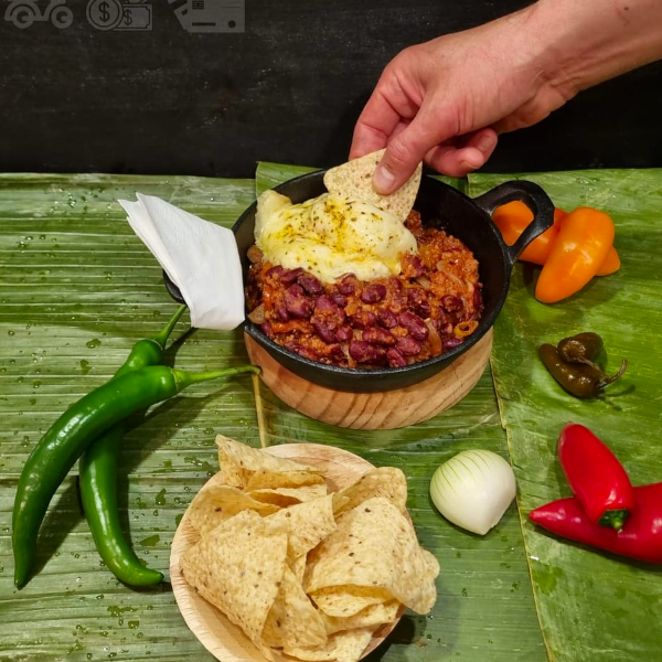 CHILI CON CARNE Y TORTITAS DE MAIZ: chilli con carne with corn tortillas.