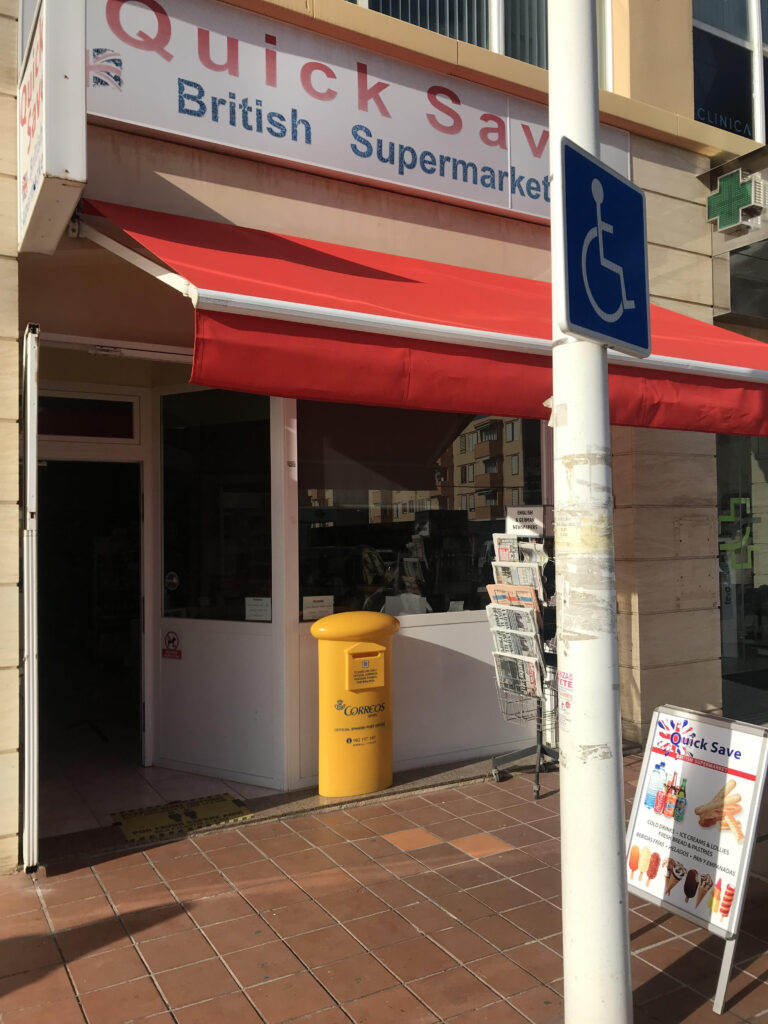Quick Save are a SEUR Pick up point and they have a Correos box at the shop with collections on a Thursday – stamps available too.