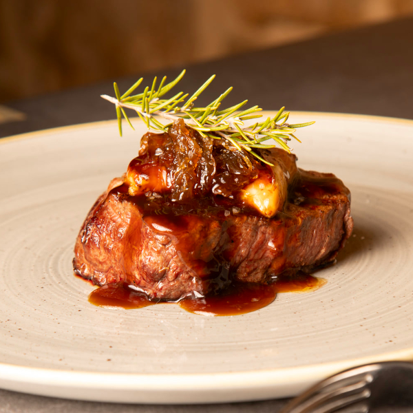 - Grilled Sirloin Steak with Caramelized Onion and Foie Gras