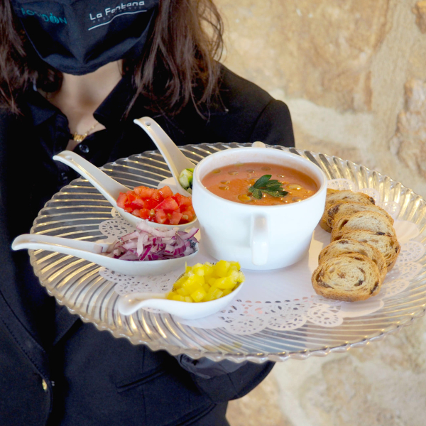 - Gazpacho with Sliced Raw Vegetables