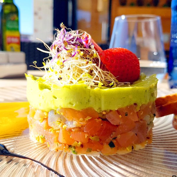 - Salmon Tartare with Avocado, Mango and Seaweed