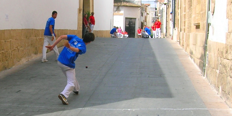 In addition there are number of games throughout the year which take place in the streets of the town, the traditional venue for many of the variants, and you might find matches being played in Carrer Sor María Gallard next to the indoor market on a Sunday morning whilst during the port fiesta in August / September there is normally amateur and professional games played in Carrer Virgen de Loreto.