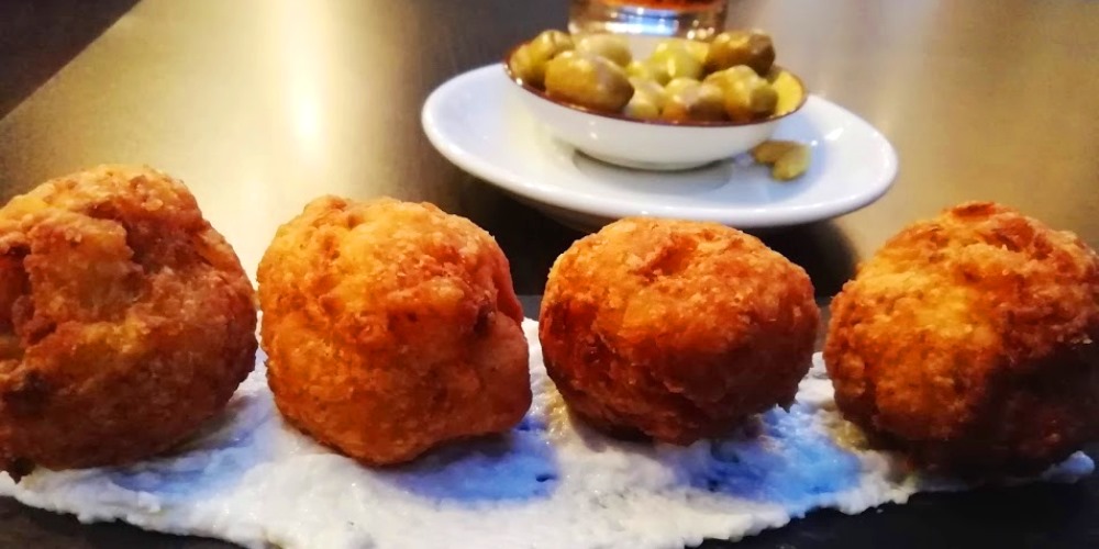 Croquettes are simply a breadcrumbed and fried roll of a tasty filling, usually bound with bechamel sauce and a culinary tradition which has its origins in Spain’s frugal past. They are a perfect snack at a bar and the most common fillings will be serrano ham, mushrooms, fish such as cod or seafood such as shrimp.