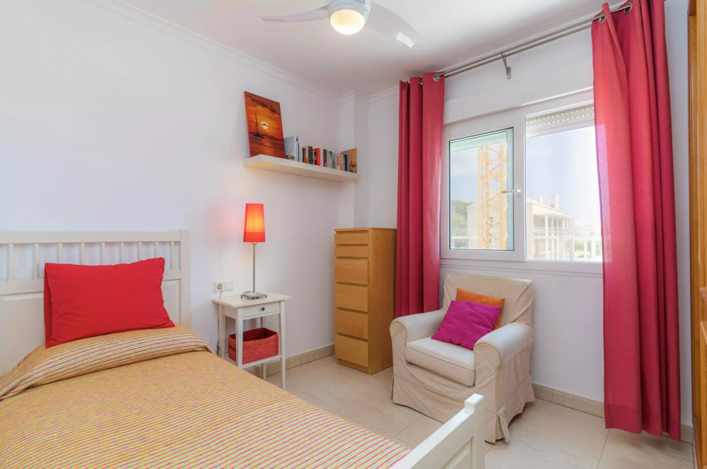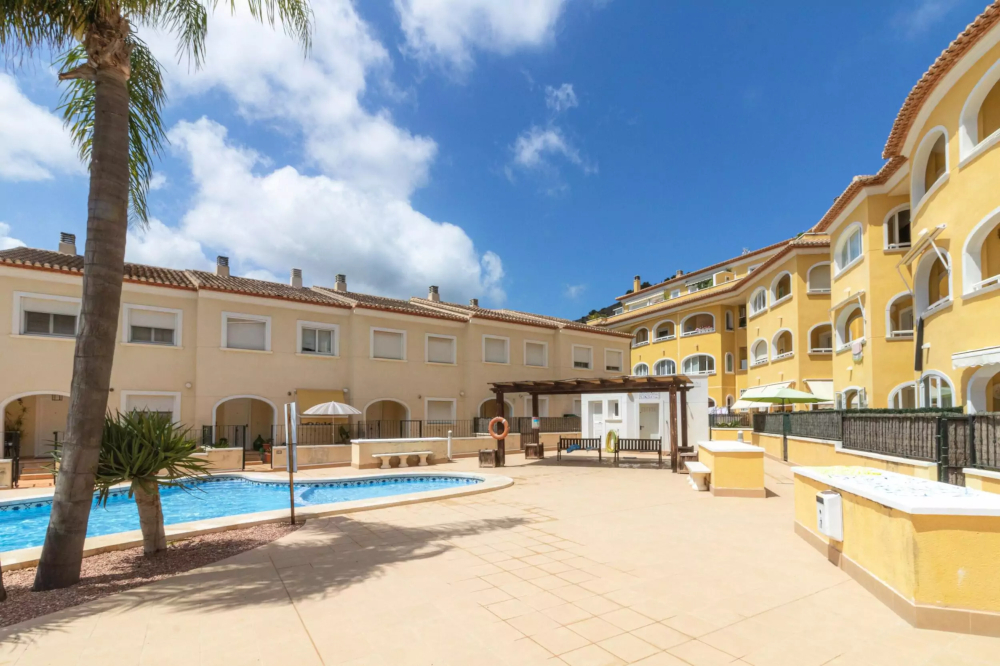 Located on the second floor – which can be reached by lift – the apartment consists of an entrance hall, spacious and bright living/dining room with sliding door with open to the balcony overlooking the community pool and offering magnificent views of Montgó.
