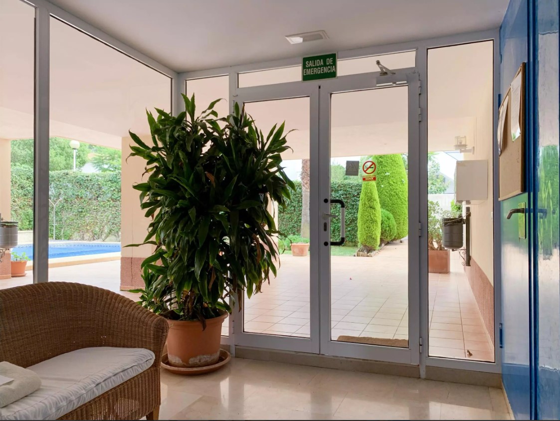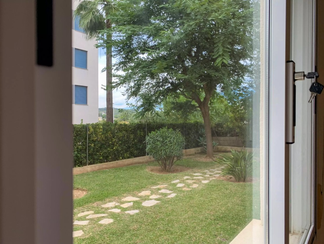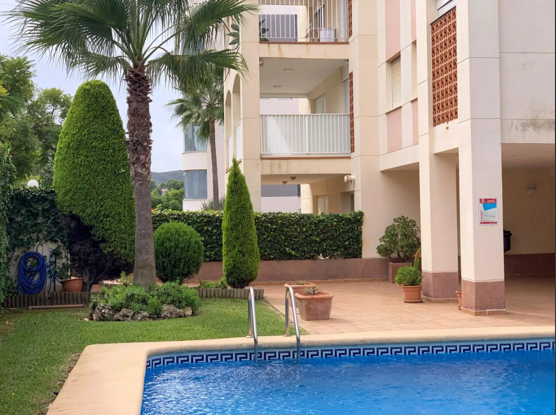 This ground floor getaway apartment is for sale in the Montañar II Beach area of Javea – within walking distance to the Arenal Beach, restaurants and shops. It has its very own private garden, plus a low key communal garden with inviting pool. Blue Marlin is an intimate community, therefore quiet. In total there are 3 bedrooms. All 3 double bedrooms have built in wardrobes and use of 2 bathrooms. The master bedroom has a dressing area and into its own ensuite including an ensuite. The ground floor apartment for sale near the beach in Javea is partially air conditioned and has a lovely south-west living area with garden access and separate kitchen – which could easily be opened up should you prefer an open concept living space. Here, there’s plenty of private space for you to enjoy outside, either underneath the shade of the covered terrace or out on the lawn and the outlook is a pleasing garden and palm-tree view. This super apartment also has the added benefit of selling with a private store room and parking space too.