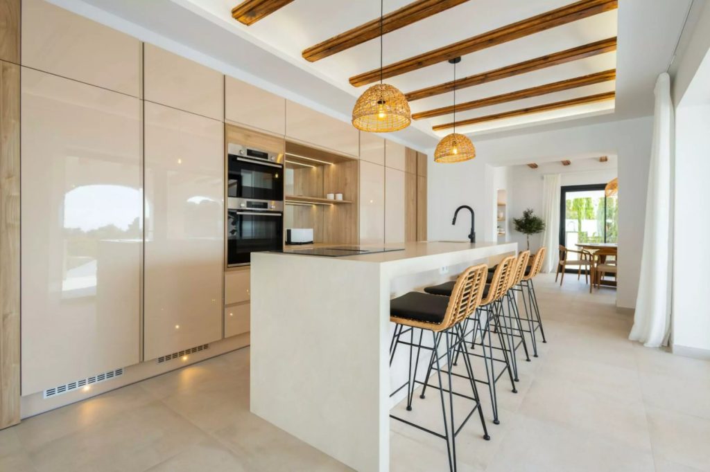 This spectacular villa is the perfect retreat for those seeking luxury and tranquility in an idyllic setting. Upon entering, you’ll be greeted by bright, open spaces, where every detail has been carefully thought out to offer maximum comfort. The open-plan kitchen blends harmoniously with the living room, creating an ideal setting for entertaining and family life.