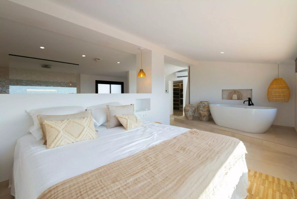 The spacious terraces are the perfect place to enjoy the stunning sea views while relaxing with a glass of wine or enjoying an al fresco dinner with friends and family. The master bedroom features a private balcony, offering an intimate corner to admire the sunrise over the Mediterranean.