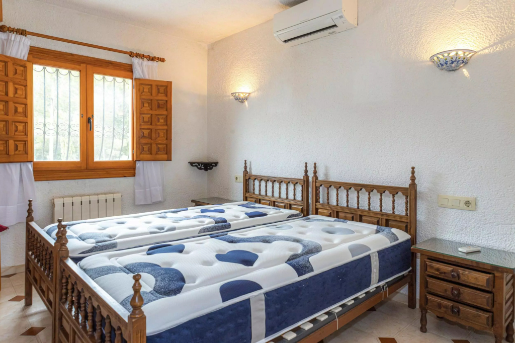 At pool level there is lots of terrace with a covered area for al fresco dining with access into a store room / fourth bedroom with bathroom, which could be a summer kitchen. The garden is fully landscaped and fenced and there is a garage below the villa with workshop area.