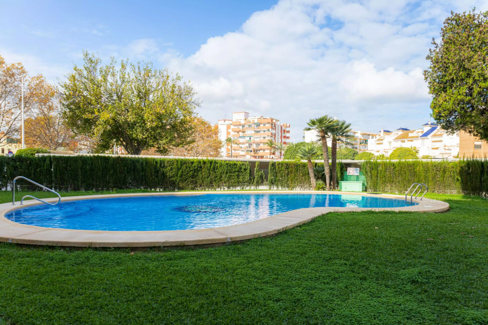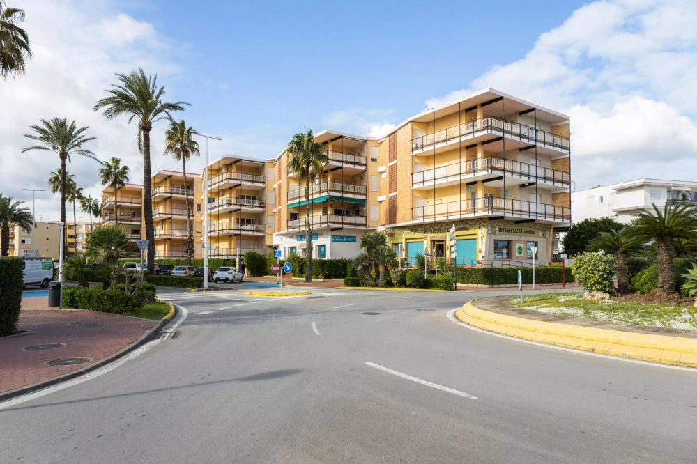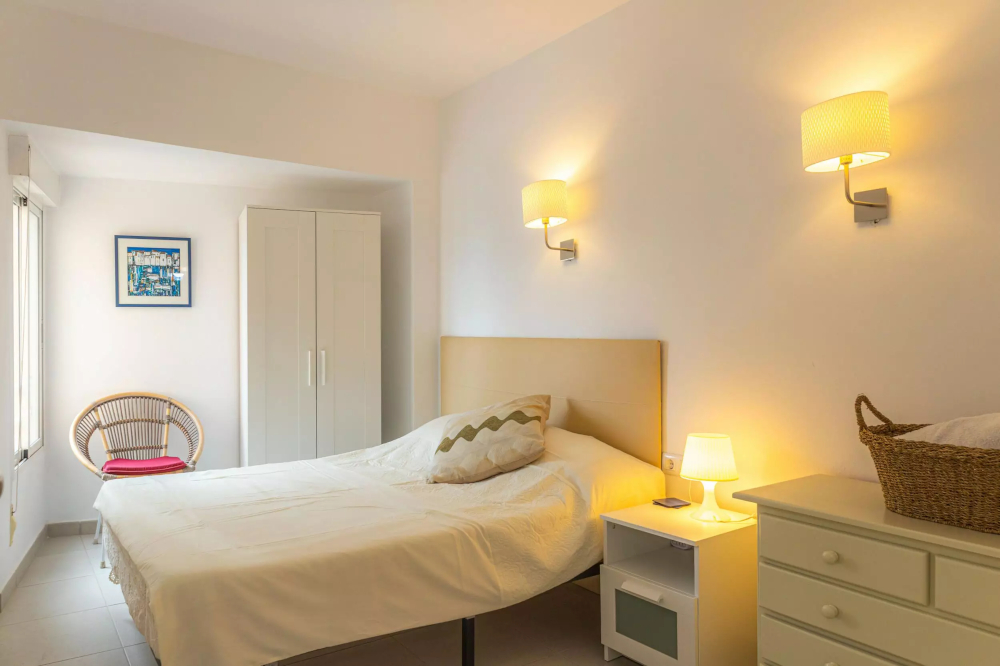 There’s nothing but a open sea view at this Arenal Beach apartment for sale in Javea. Part of a front line complex, it’s centrally located within walking distance to everything: the beach, the Canal de la Fontana, bars, restaurants and more! There are three bedrooms with wardrobes and two lovely modern bathrooms, all refurbished to a good standard a few years back.