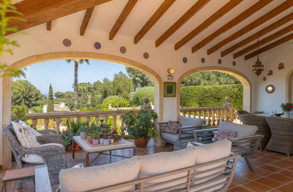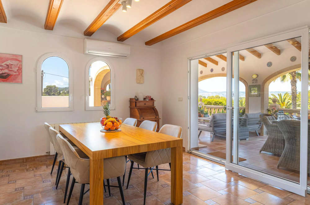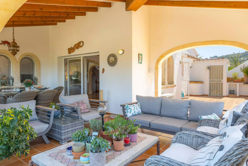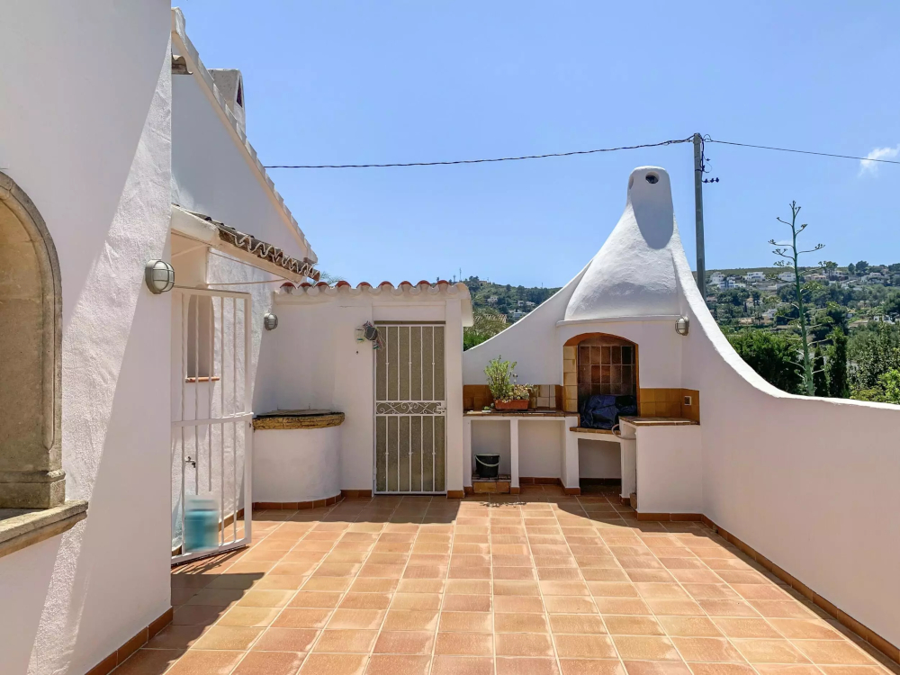 This three-bedroom, two-bathroom villa, located in the Cap Martí area, is distributed over two levels and includes a huge master suit that occupies the whole upper level with its own terrace with sea and valley views. In addition, an internal staircase leads down to a large utility/storeroom which could be converted into a fourth bedroom, an office or a gym. Secure private parking and garden paradise with ambience lights.