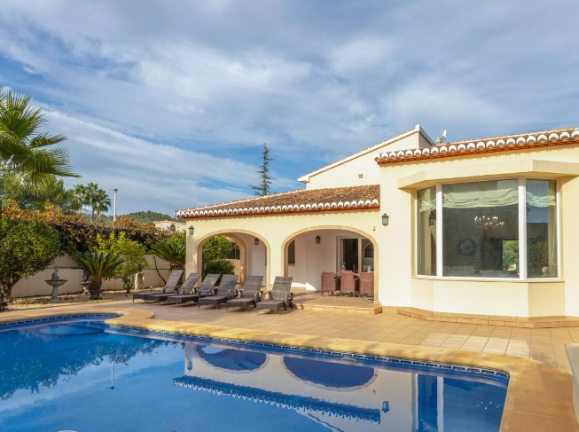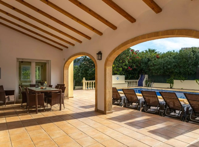 This south-facing five bedroom villa is located in the Las Laderas area of Jávea, one of the most exclusive and younger residential areas which is not too far from the Arenal beach.