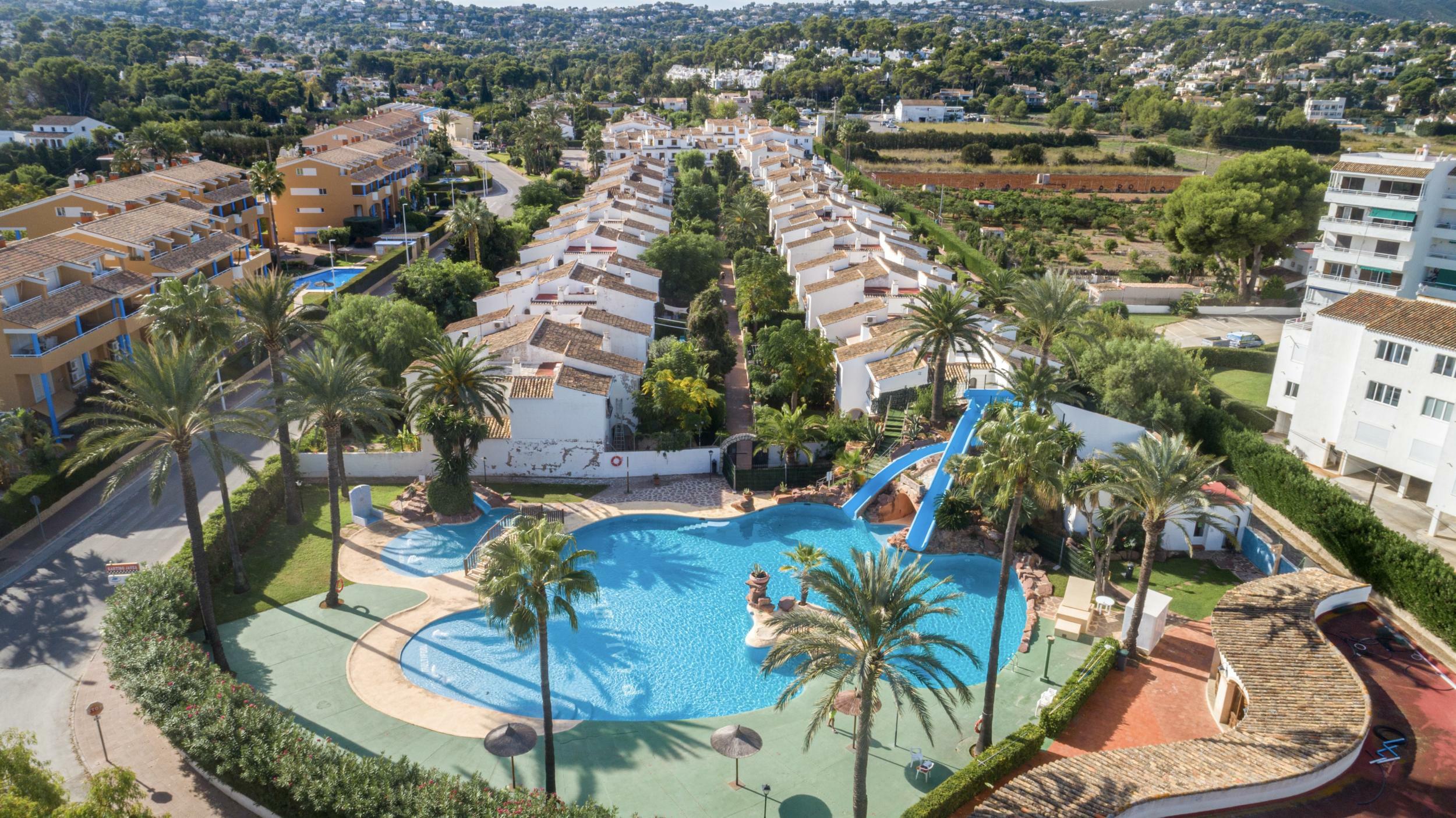 Feeling active, perhaps a swim. Turn right from the garden gate and a minute away is the enormous communal pool and slides that the kids (whatever age) will absolutely love. It boasts a children’s pool, an ample sun terrace on which to sunbathe and in high season there are lifeguards and a bar service. Car parking is either close to the pool or walk just 100 metres left from the gate, 5 minutes further and you reach the local supermarket handy for fresh baked breakfast pastries. The Arenal with its beachside promenade, myriad restaurants, cafes, bars and shops is a flat and easy 15-minute stroll.