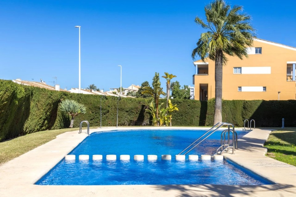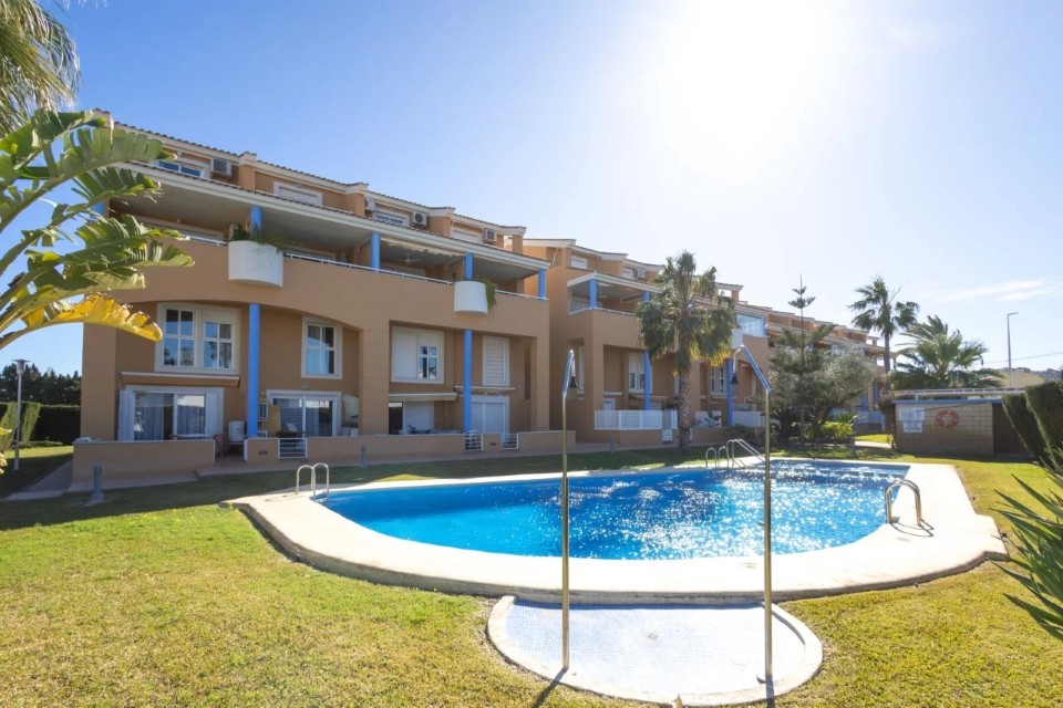 This ground floor duplex in Javea is just 350m from Playa del Montañar II, with 3 bedrooms, 2 bathrooms, a private terrace, communal pool, and parking. Perfect for beachside living!