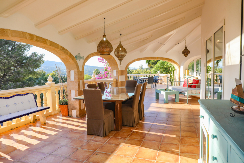 The Ibiza-style four-bedroom, four bathroom villa is distributed over two levels with sun flooded terraces on both levels and two additional private roof top terraces overlooking the valley. It is surrounded by a beautiful mature grown in garden. Building works for the pool and the terrace extension have started already and will be finished within 5 weeks time.