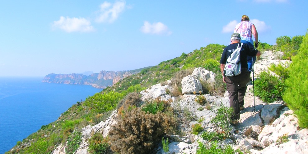 Look out for several natural balconies to the left-hand side where, with a little care and respect for the height, you can sit and take in the stunning views which stretch south to Moraira’s Cap d’Or headland and, just poking over the top, the Peñon d’Ifach of Calpe.