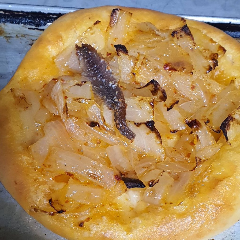 The ‘coca’ is formed with a pastry base on top of which are added a number of different toppings of which the most popular are anchovies, chorizo sausages, spinach, onion, peas and the ‘esgarraet’, a traditional mix of roasted red and peppers as well as aubergine.