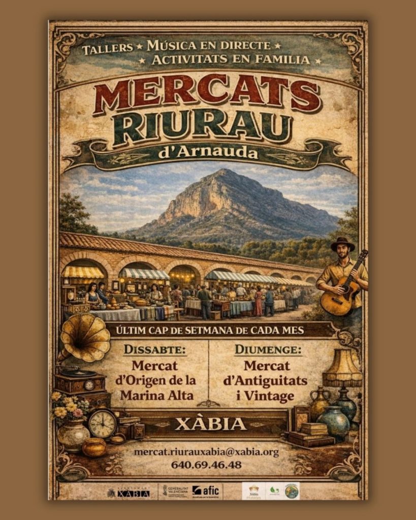 Xàbia is expanding its leisure and local commerce offerings with the launch of Mercats Riurau d’Arnauda, a new market created with long term continuity in mind and a programme designed to attract both residents and visitors. The initiative introduces a weekend format that alternates between two complementary themes: local produce and crafts on the one hand, and the world of antiques and vintage on the other.