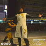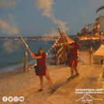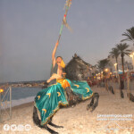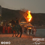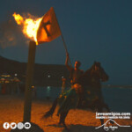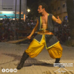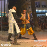 An exchange of fire marked the symbolic takeover of the beach, led by a horseman who snatched flags of the cross and burned them on the flaming torches. As the Moorish filaes pushed their Christian counterparts back towards the castle erected on the square in the middle of Avenida Jaime I, the gunfire accelerated as the Moorish ambassador arrived to arrange the surrender of the fortress. Soldiers battled each other on the square, the sparks flying from the blades in the falling darkness. An offer of jewels and precious stones was turned down; the tantalising dancing from a lone woman ignored.