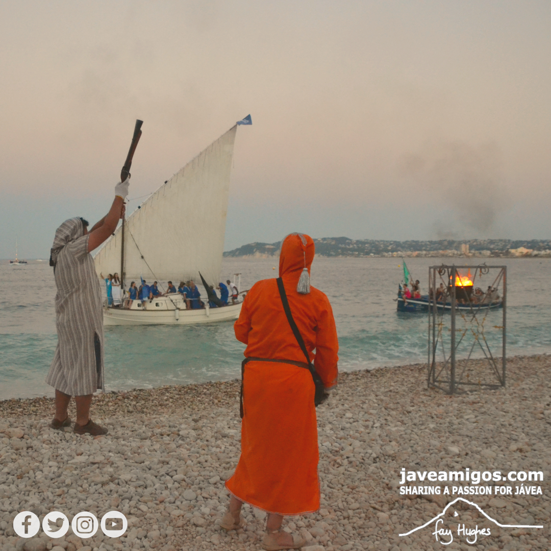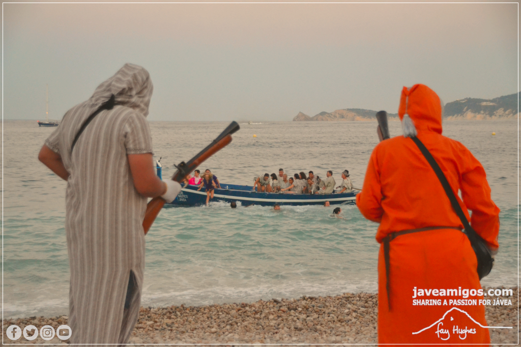 On Thursday evening, the relative peace and quiet of the port zone of Xàbia was broken by the thunderous retort of the blunderbuss as the Moorish troops staged their symbolic invasion – el desembarco – as part of the Moros i Cristians de Xàbia celebrations which not only remind us of the 781 years that the Iberian peninsula was influenced by Islamic invaders but also of the Barbary pirates from the coast of North Africa who terrorized coastal communities along the eastern seaboard of Spain right up until the 18th century.