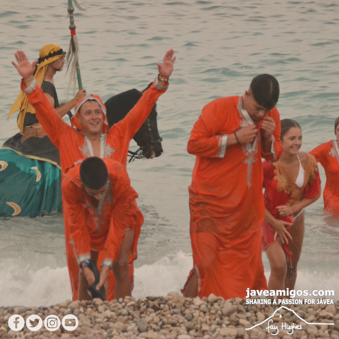 Much like the forces of Tariq ibn Ziyad, who landed in southern Spain in 711 to begin the Muslim conquest of Hispania, several boats provided by the historic boat association of Xàbia discharged groups of Moorish fila members into the sea, watched by hundreds of curious onlookers who jostled for space along the seawall above the pebble beach of La Grava.