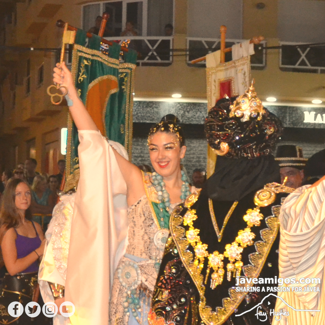 Eventually the invading forces proved too strong and the Christians emerged from the castle to hand over the keys to the Moorish captain Emilio Bañuls to the grand cheers of the Moorish filaes sitting alongside the square: Xàbia es Mora!