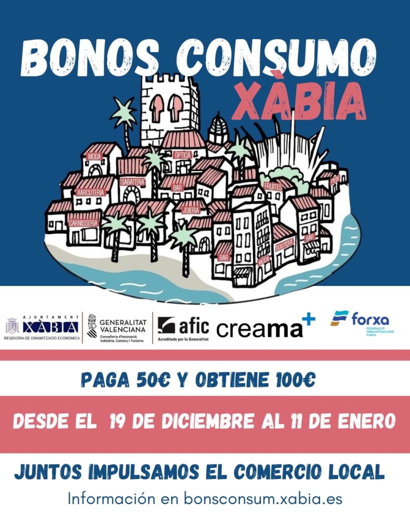 Vouchers can be purchased from this Friday 19th December at 8.00am via the website bonsconsum.xabia.es. Buyers must enter their DNI or NIF; passports are not accepted. The system will automatically verify that the applicant is registered as a resident in Xàbia, is over 18 years of age and has no outstanding debts with the administration. Once validated, payment can be completed online. Users will then be able to select a day and time slot to collect their card in person from Monday 22nd December onwards at the municipal offices in the Port, the historic centre or the Arenal. Afternoon collection times will also be available.