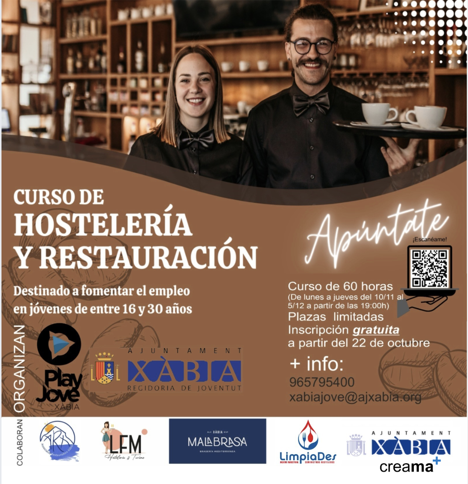 Xàbia Council, through its Department of Youth and in collaboration with CREAMA, the Play Jove programme, and the Asociación de Restauradores de Xàbia (ARX), has announced a new basic hospitality training course for local residents aged 16 to 30.