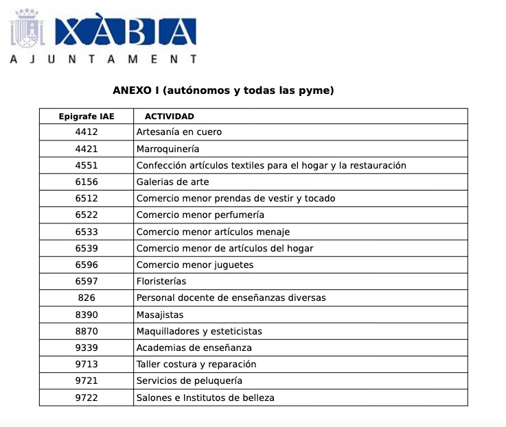 Xàbia Council has opened the application period to apply for aid within the “RECUPEREM XÀBIA” initiative, a complementary line to the PARENTÉSIS plan of the Generalitat Valenciana and which aims to provide subsidies to the self-employed and SMEs in sectors affected by the COVID-19 health restrictions, especially those linked to celebrations, which had not been eligible for the regional funding package.