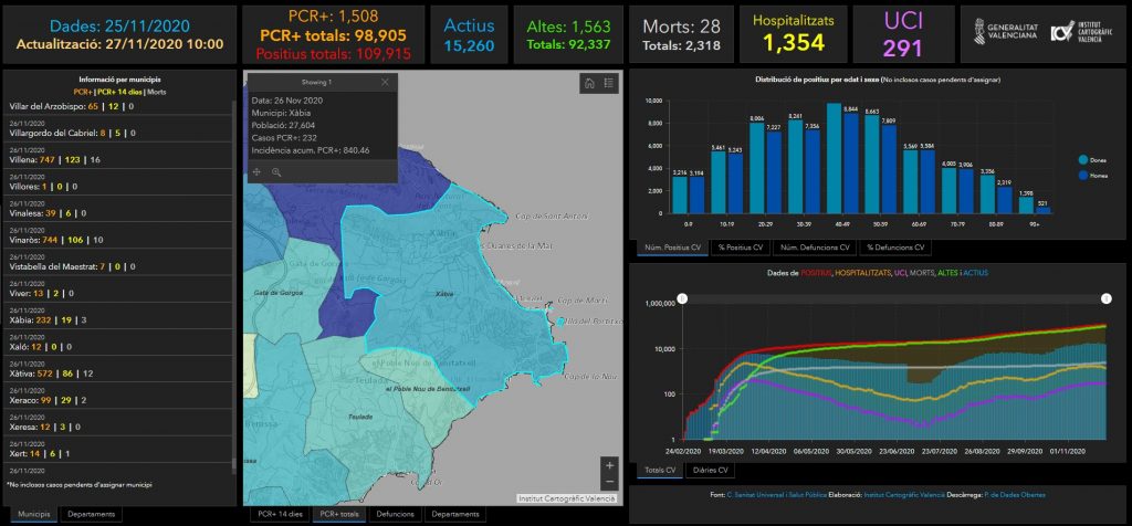 The Dénia Health Authority, which covers almost all of the Marina Alta region, has recorded 50 new infections since the last update bringing the total to 1,931 positive cases since the crisis began. This represents the biggest rise since earlier in the month, but could be due to corrections after the previous update which recorded the lowest rise in new infections since mid-October.