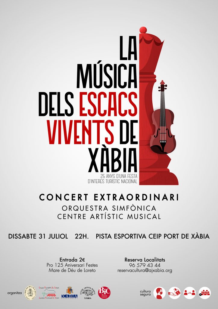 However, the organizers have not wanted to miss the opportunity to share this important milestone with the general public as something of a prelude to a future celebration. Thus, following all the current health recommendations and seeking to guarantee the safety of all those attending, a special concert entitled “La Música dels Escacs Vivents de Xàbia: 25 anys d’una Festa d’Interés Turístic Nacional“.